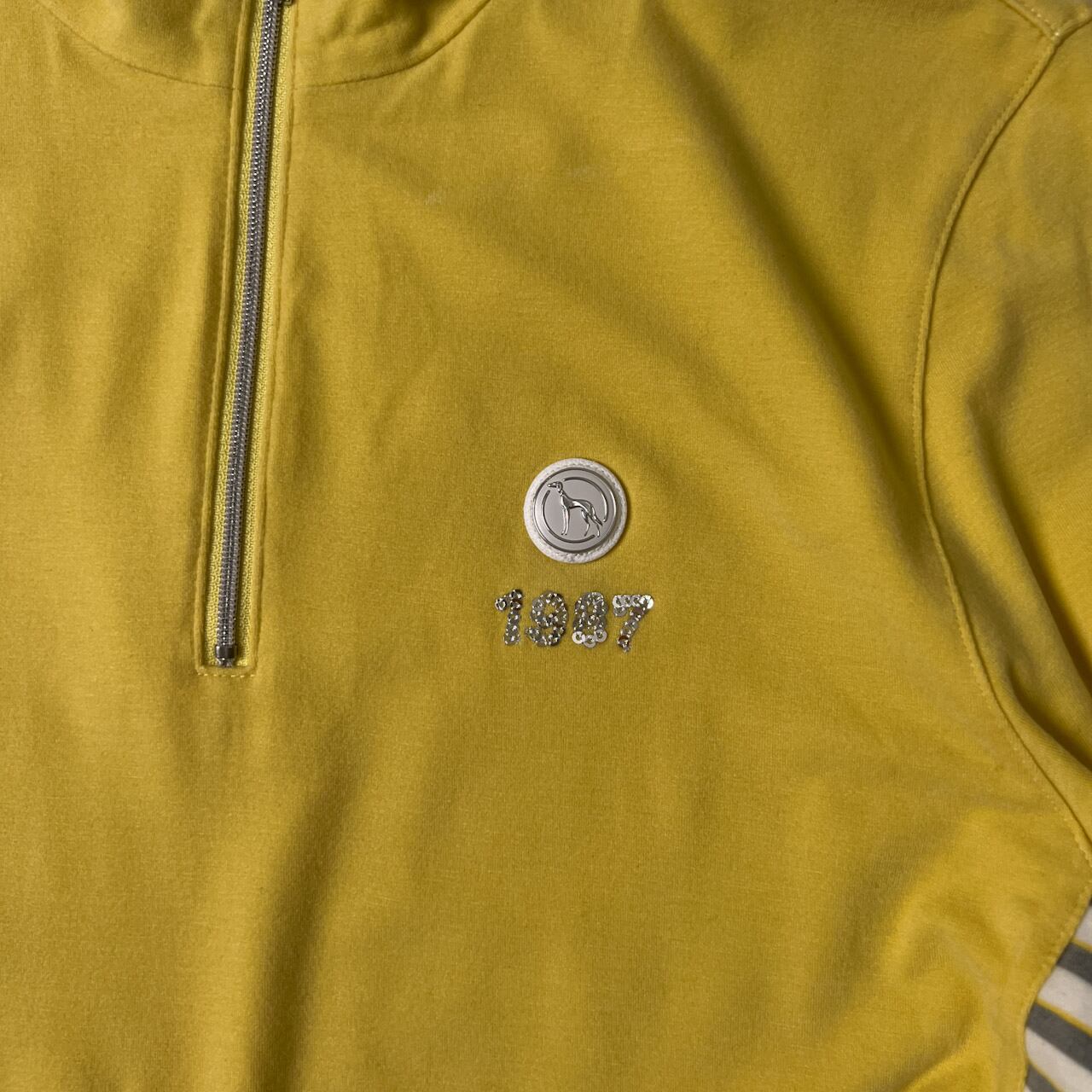 adabat アダバット ボーダー切替 ハーフジップ ストレッチ 長袖ポロシャツ 40/イエロー