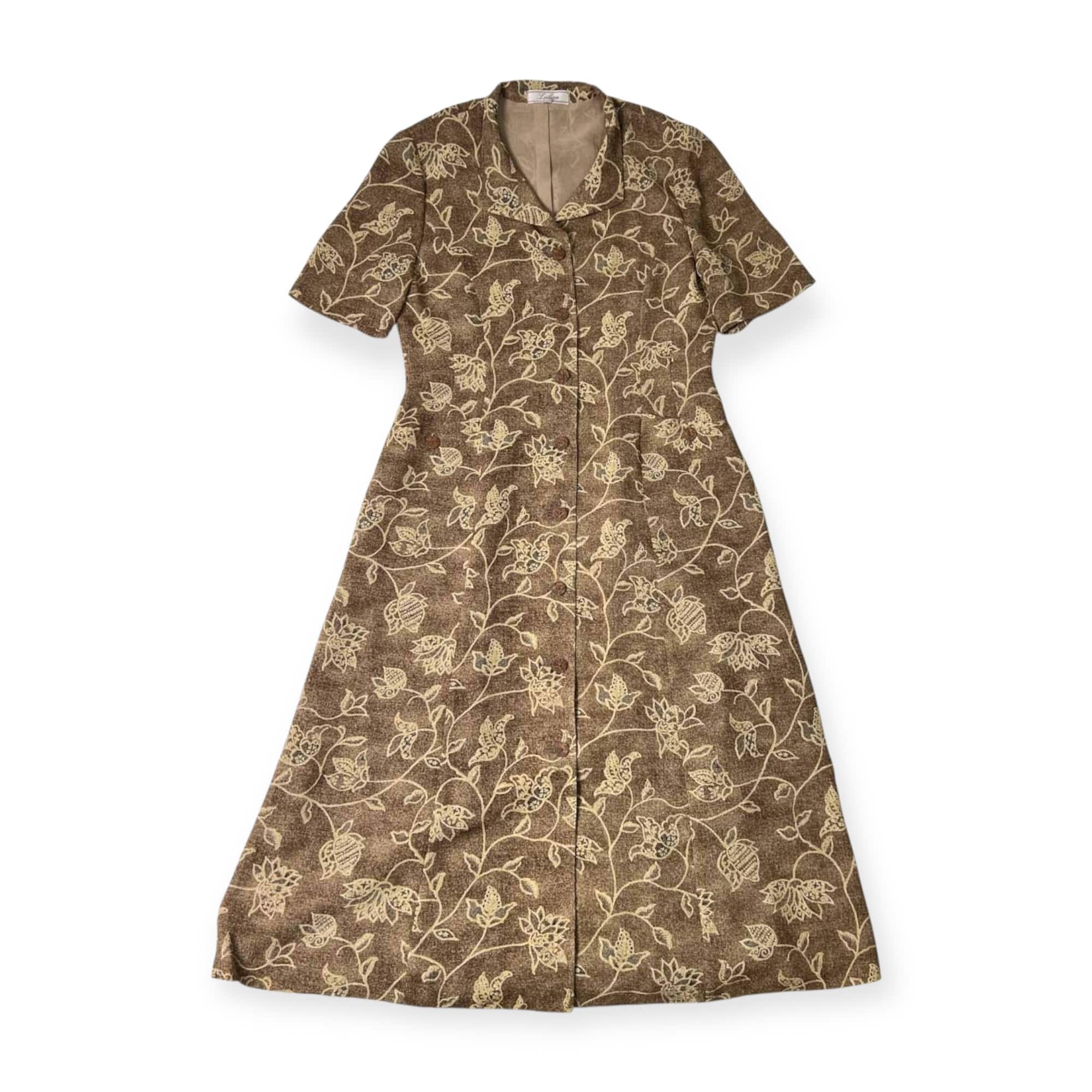 Leilian レリアン フローラル 花柄 半袖 ワンピース 9/ベージュブラウン系 レディース レトロ