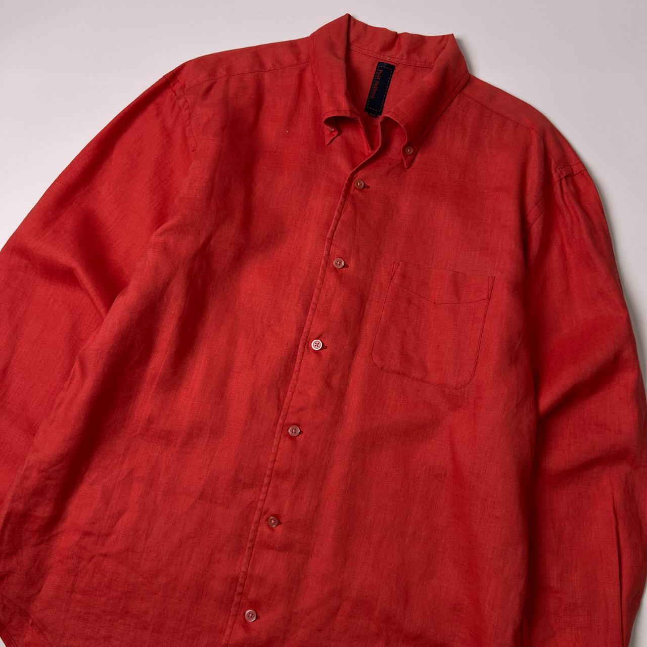 Poll Nellson ポールネルソン リネン100% スキッパー BD 長袖シャツ LL/オレンジレッド
