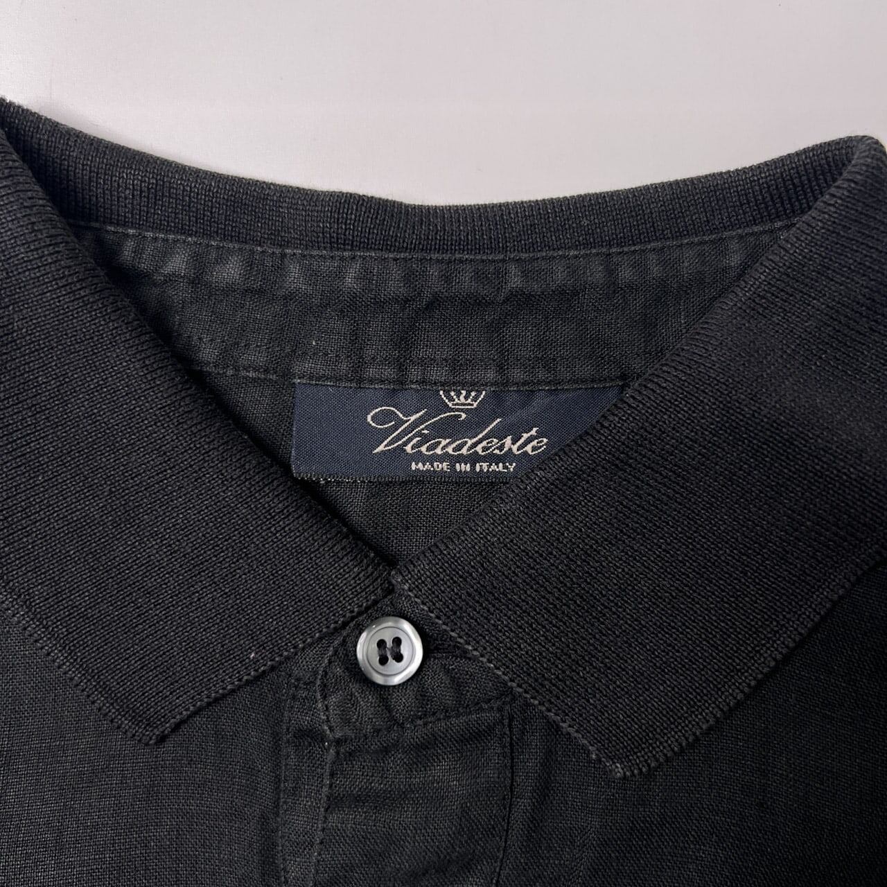 Viadeste ヴィアデステ イタリア製 襟切替 半袖ポロシャツ Lサイズ程度/ブラック/リネン系