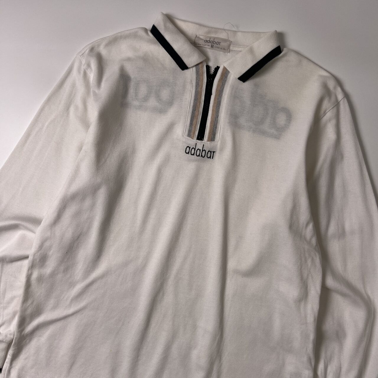 adabat アダバット デザイン ハーフジップ 長袖ポロシャツ 1/ホワイト ゴルフ