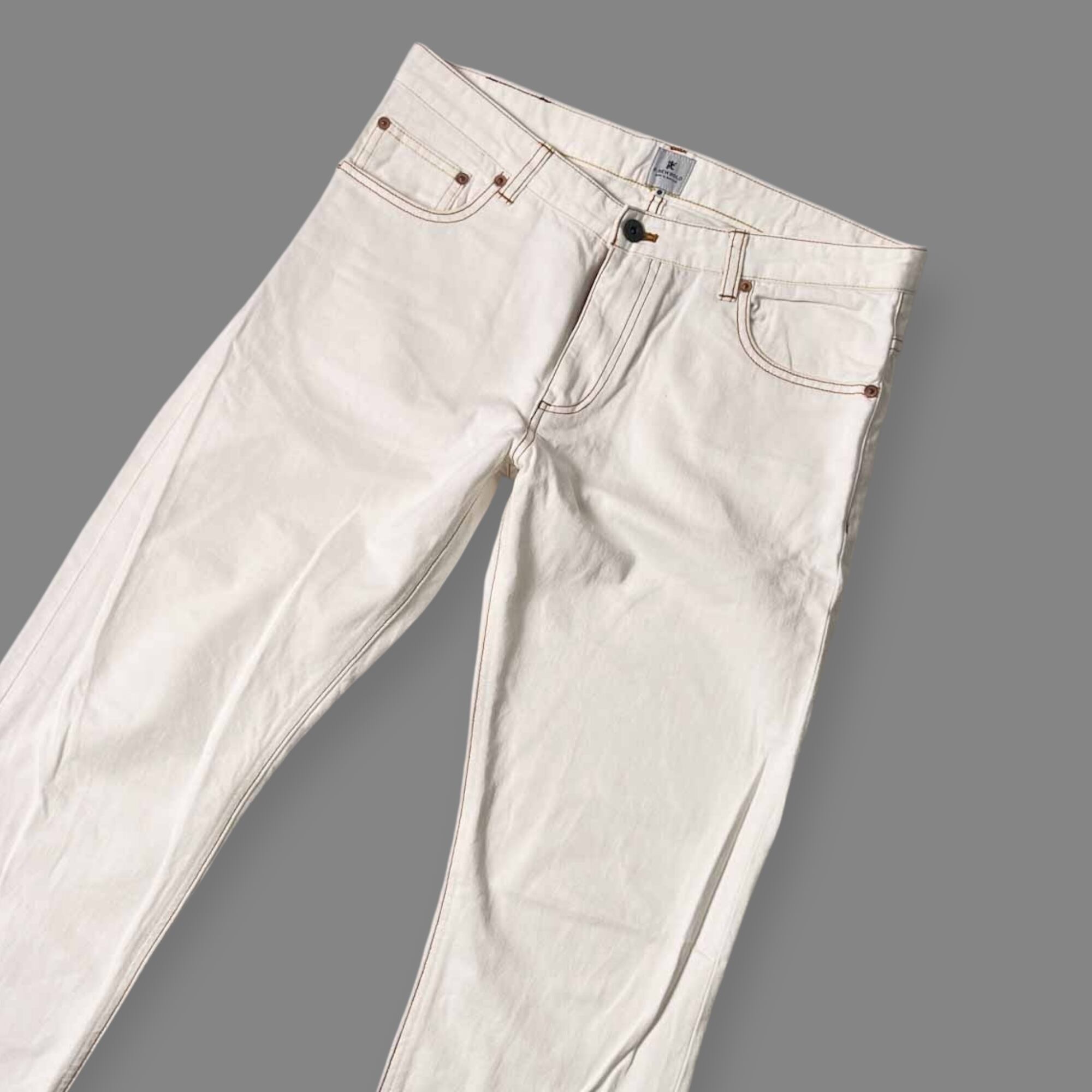 R.NEWBOLD アールニューボールド 革ラベル デニムパンツ カラーパンツ L/ホワイト メンズ