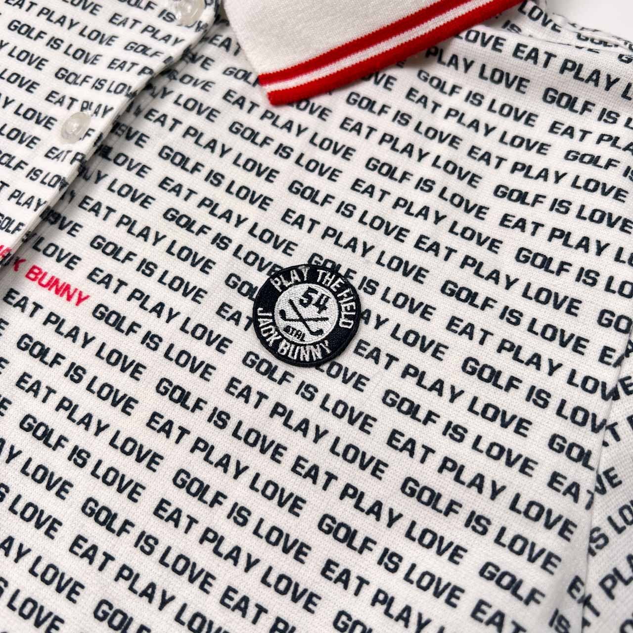 Jack Bunny!! ジャックバニー 英字 ロゴ総柄 半袖 ストレッチ ポロシャツ サイズ 0 /ホワイト/パーリーゲイツ