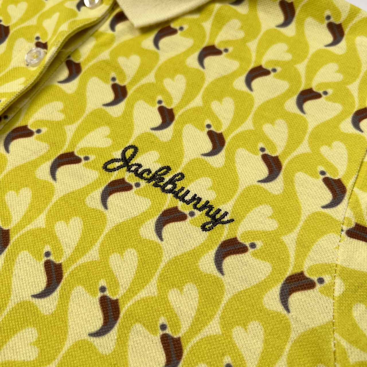 Jack Bunny!! ジャックバニー パーリーゲイツ バード柄 総柄 半袖 ポロシャツ 0 /レディース/ゴルフ/スポーツ/イエロー系
