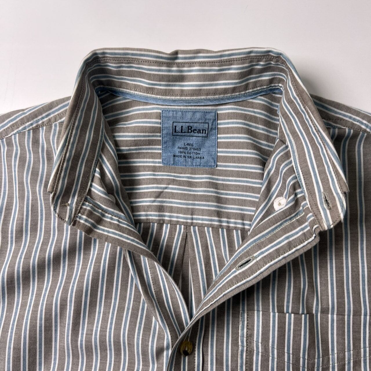 L.L.Bean エルエルビーン ストライプ BD 半袖シャツ L/ブラウン ブルー/コットン