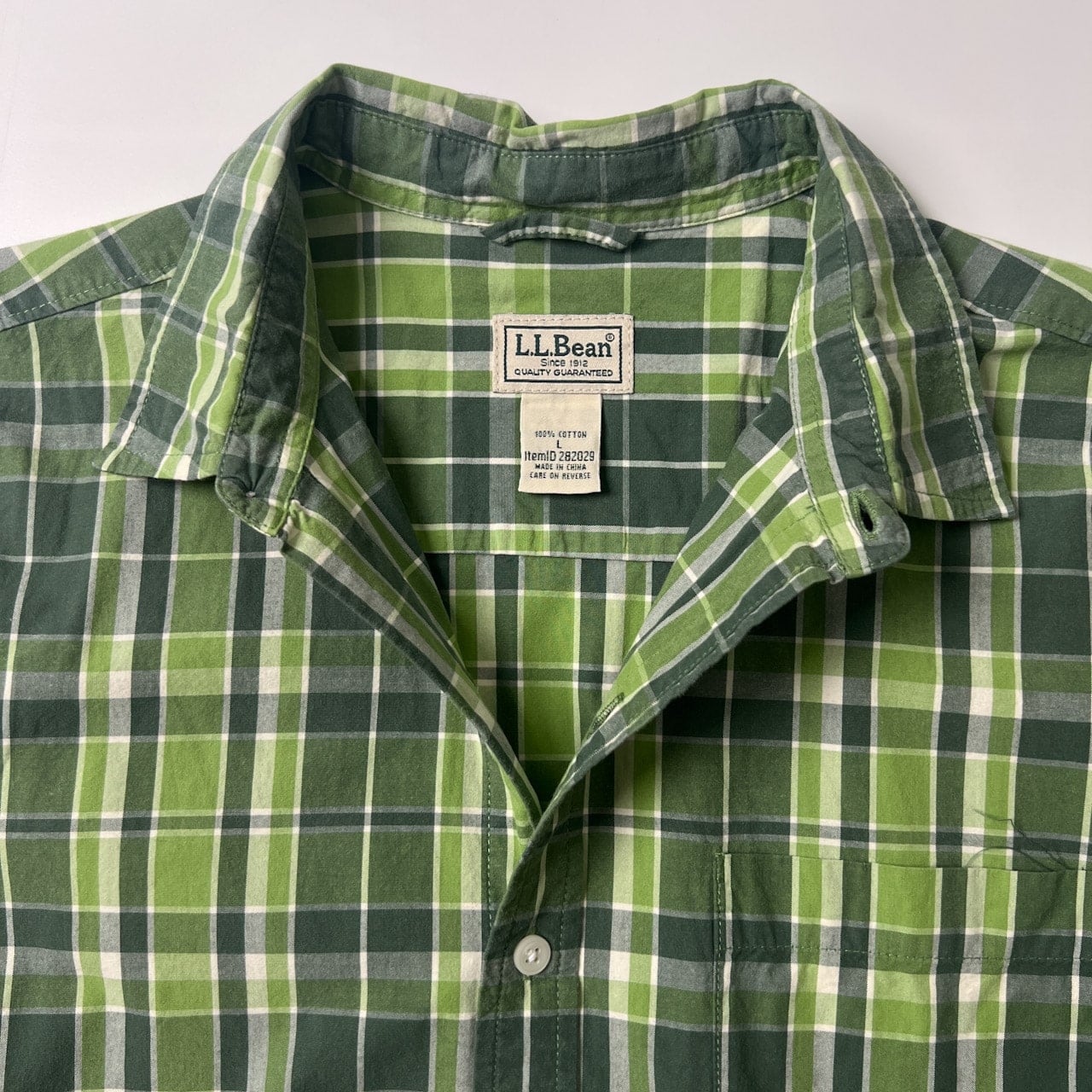 L.L.Bean エルエルビーン チェック柄 半袖シャツ L/グリーン/コットン