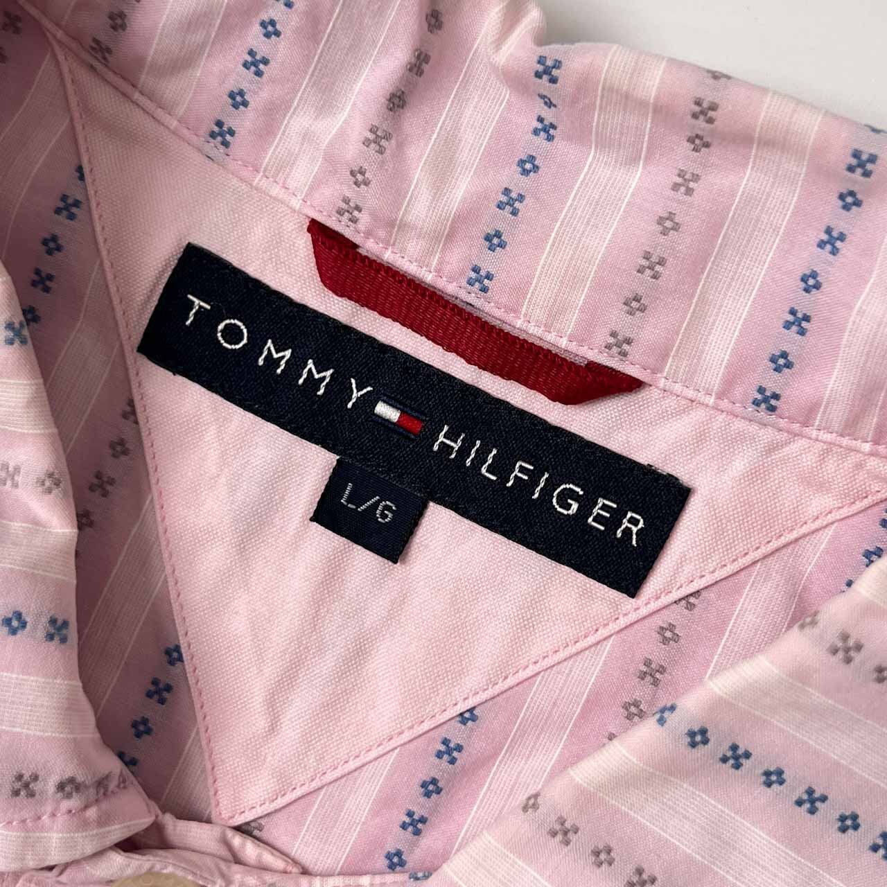 TOMMY HILFIGERトミー ヒルフィガ− ボーダー 半袖シャツ L/G /ピンク メンズ