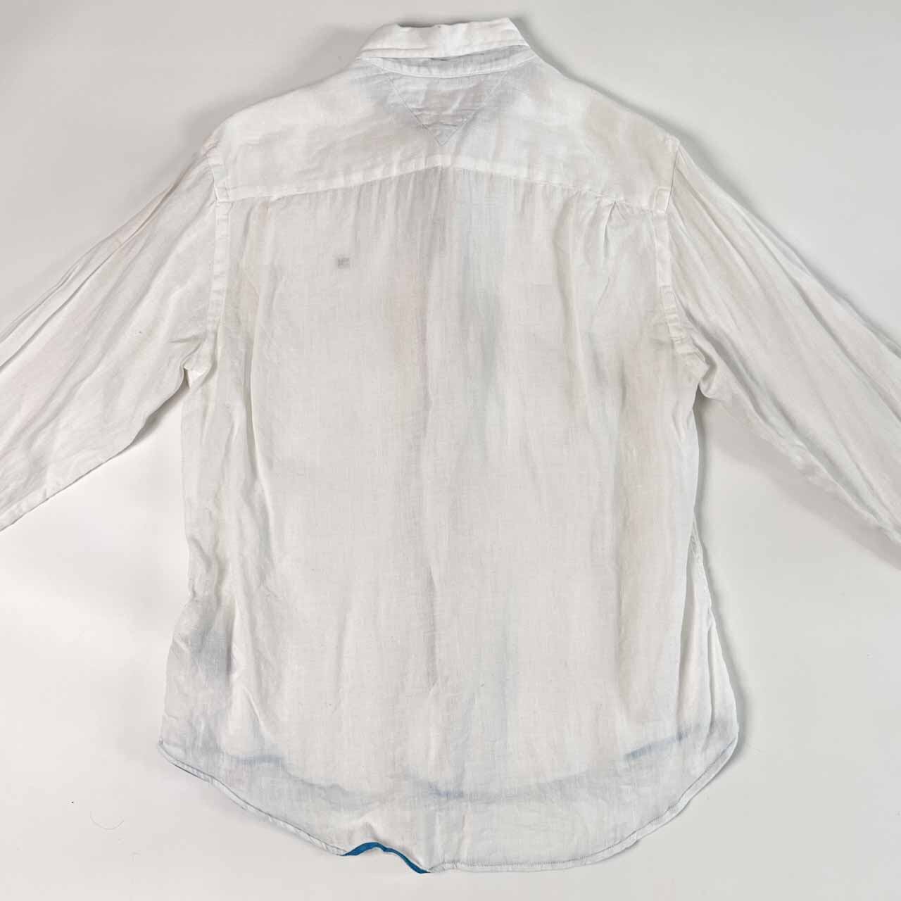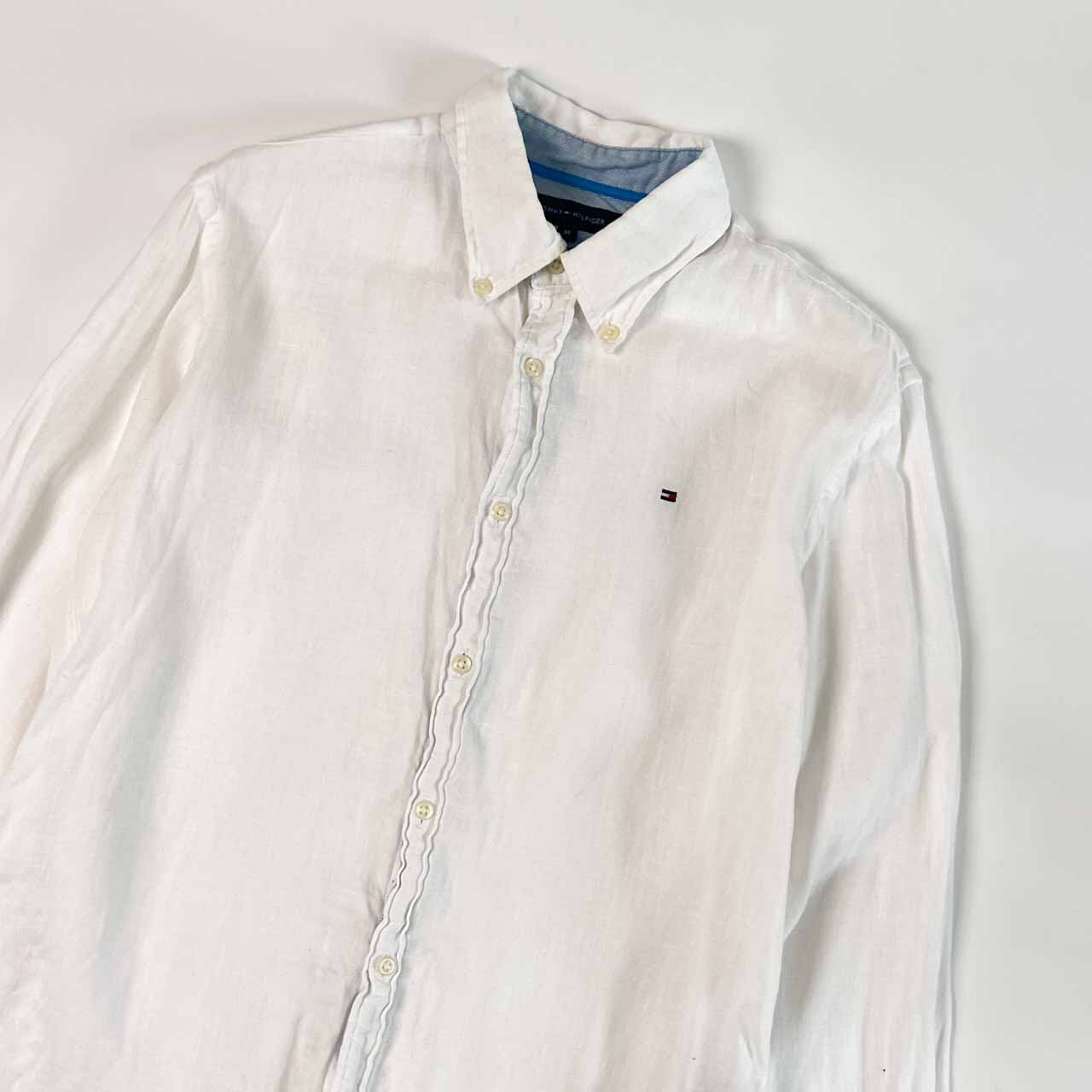 リネン100% TOMMY HILFIGER トミーヒルフィガー BD ボタンダウン 長袖シャツ M/ホワイト メンズ