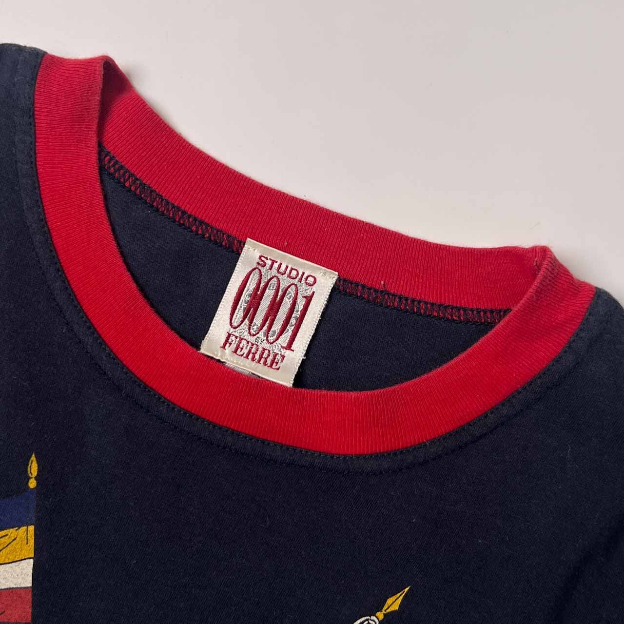 80s STUDIO 0001 BY FERRE ジャンフランコフェレ 国旗デザイン 半袖 リンガーTシャツ/ネイビー系 メンズ ビンテージ