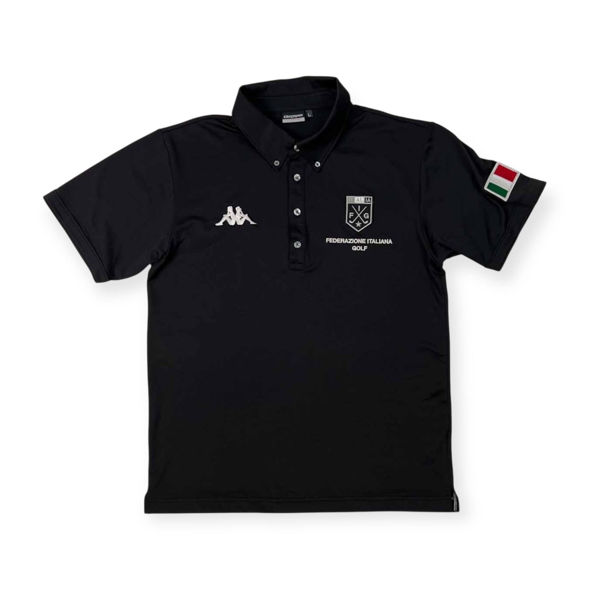 Kappa GOLF カッパ ゴルフ ワッペン刺繍 ストレッチ BD 半袖 ポロシャツ サイズ L /メンズ/ブラック/スポーツ