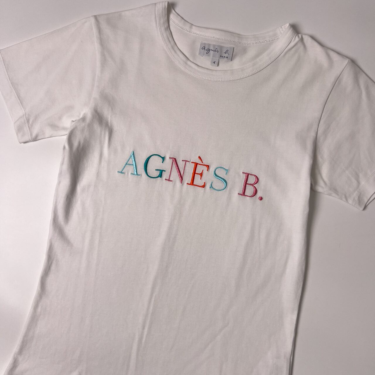 agnès b. アニエスベー ロゴ刺繍 半袖Tシャツ イ/ホワイト