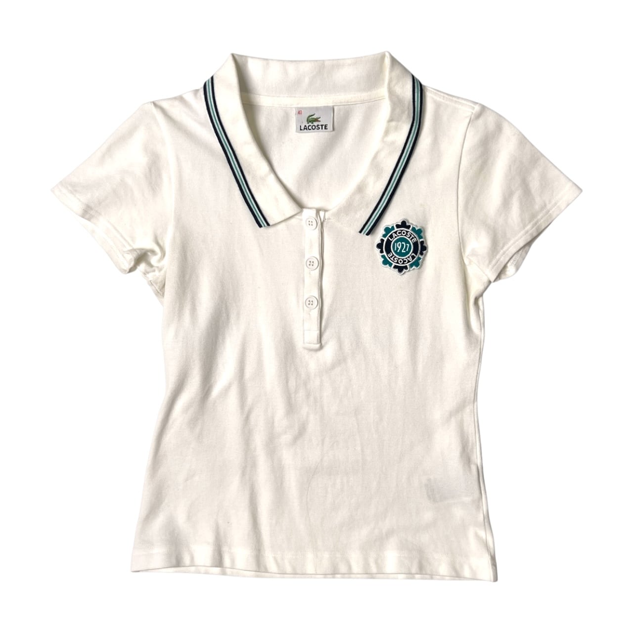 LACOSTE ラコステ ワッペン 半袖ポロシャツ 40/ホワイト/鹿の子
