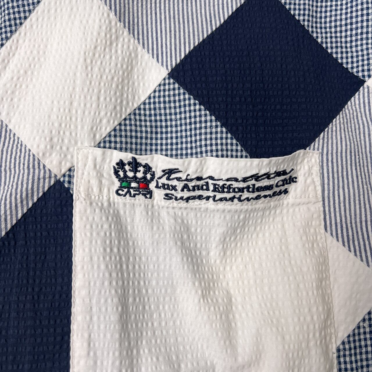 CAPRI カプリ チェック柄切替 BD 半袖シャツ 52/ホワイト ネイビー/シアサッカー /大きいサイズ