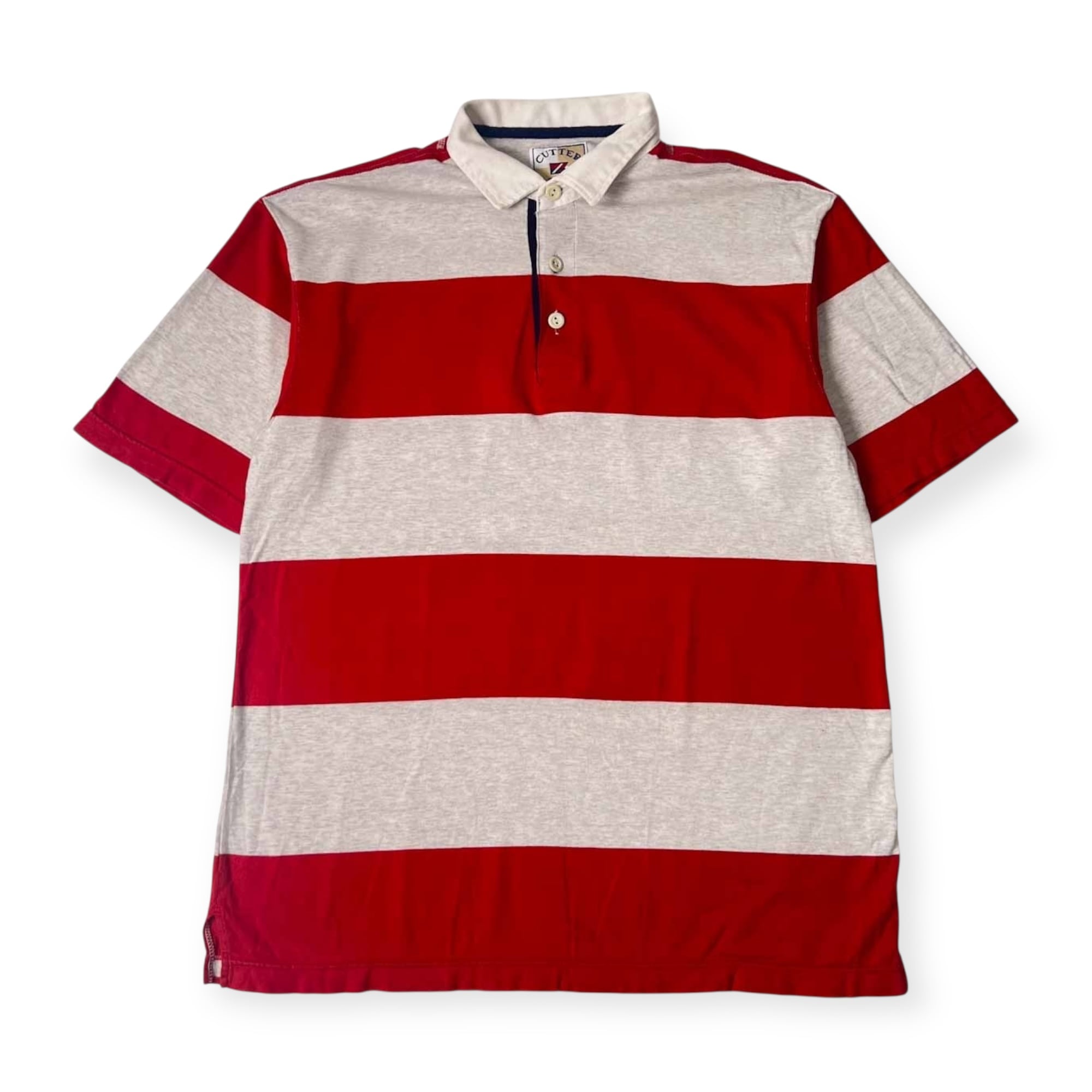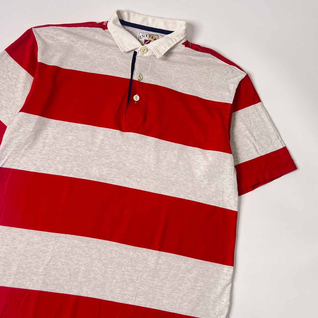 CUTTER&BUCK カッター&バック ボーダー 半袖 ポロシャツ L/ライトグレー×レッド メンズ ゴルフ 日登美