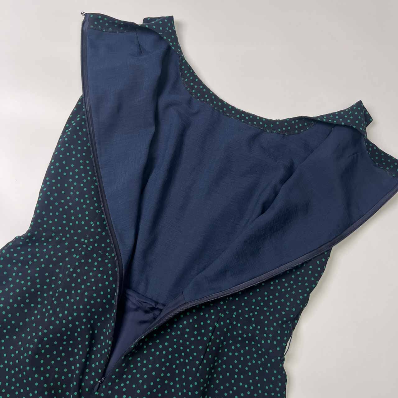 Leilian レリアン ドット柄 ノースリーブ ワンピース 7/ブラック×グリーン レディース