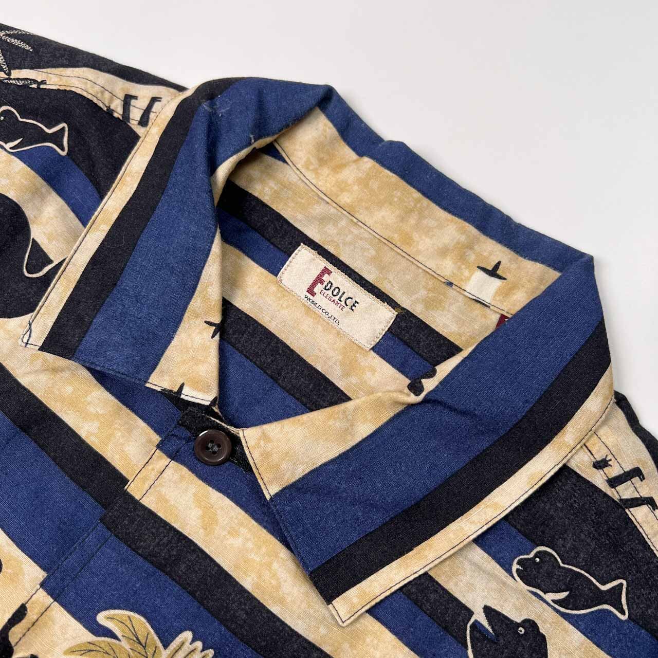 DOLCE ドルチェ 総柄 ボーダー柄 リネン混 レーヨン 半袖シャツ サイズ 16 /メンズ/麻混
