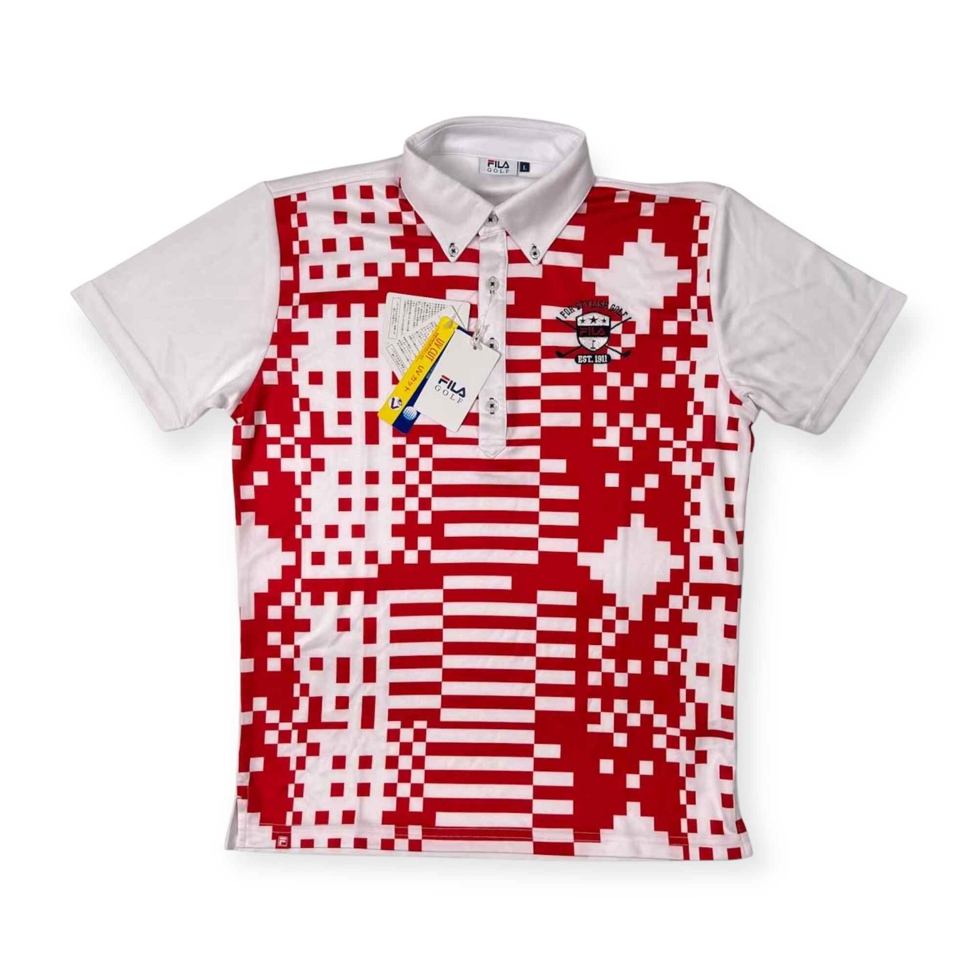 タグ付き 未使用品 FILA GOLF フィラ ゴルフ 柄入り BD 半袖 ドライ ポロシャツ サイズ L /ホワイト×レッド/メンズ