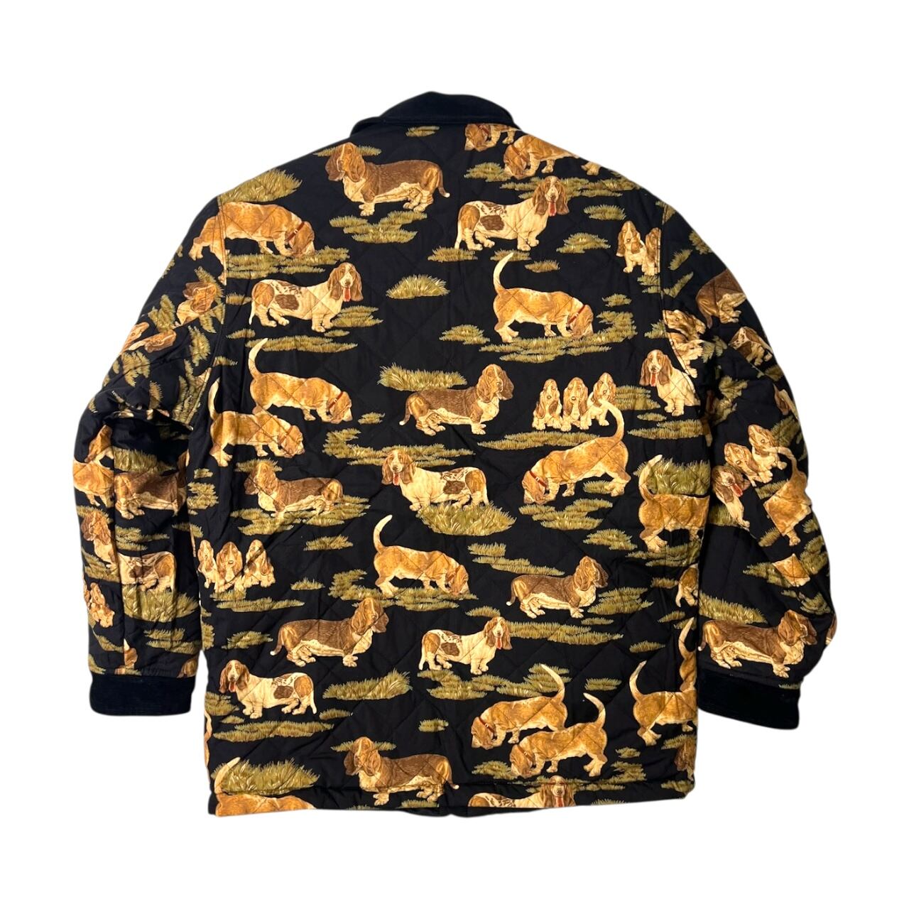 Karl Helmut カールヘルム リバーシブル キルティングジャケット 犬総柄(コットン)×ブラック無地(ナイロン)