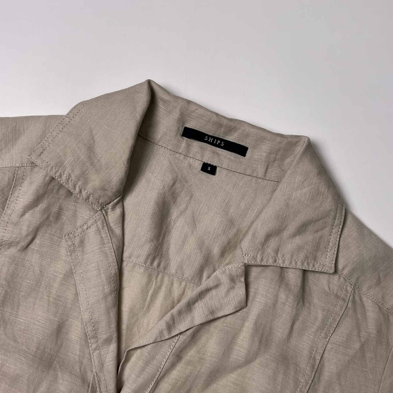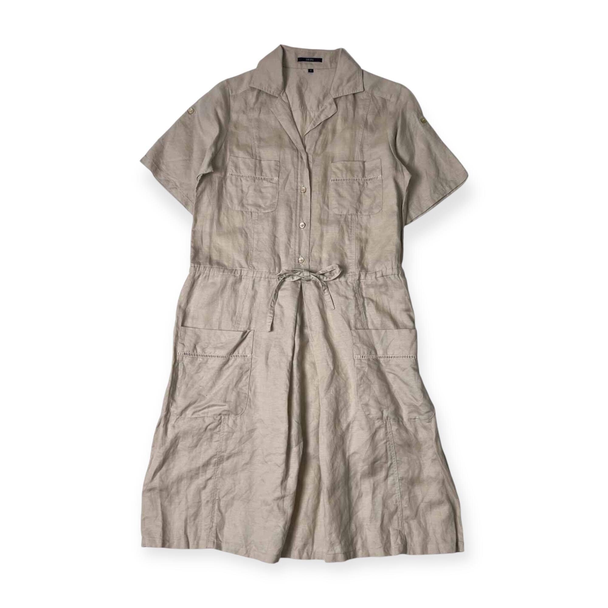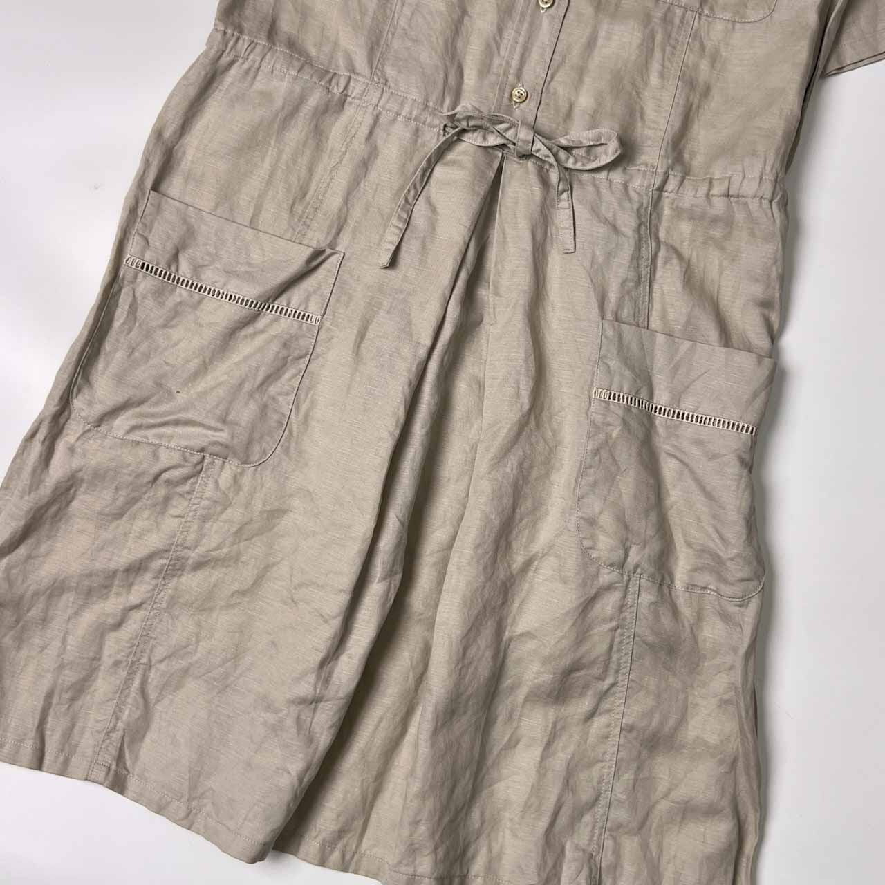 リネン混 SHIPS シップス ワーク 開襟 半袖 ワンピース S/ベージュ レディース