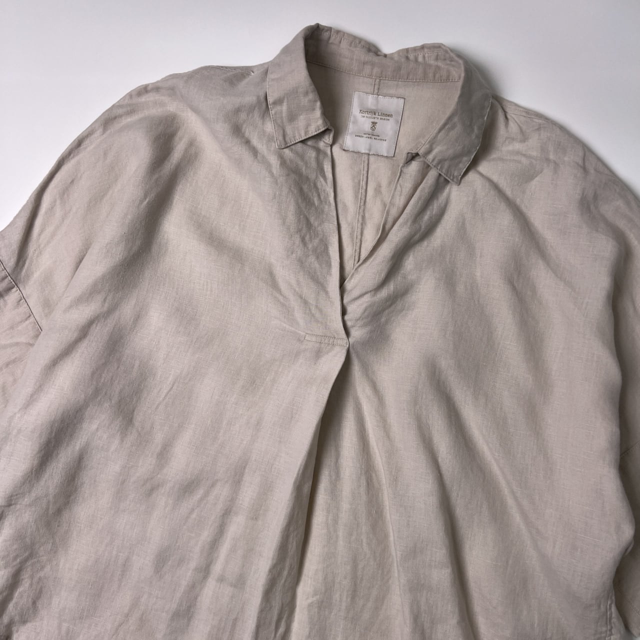 UNITED ARROWS ユナイテッドアローズ コルトレイクリネン スキッパー 五分袖 リネンシャツ M/ライトベージュ Kortrijk Linnen