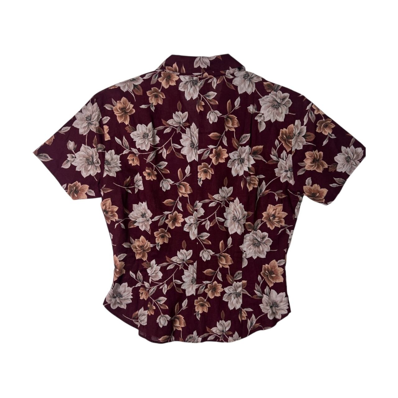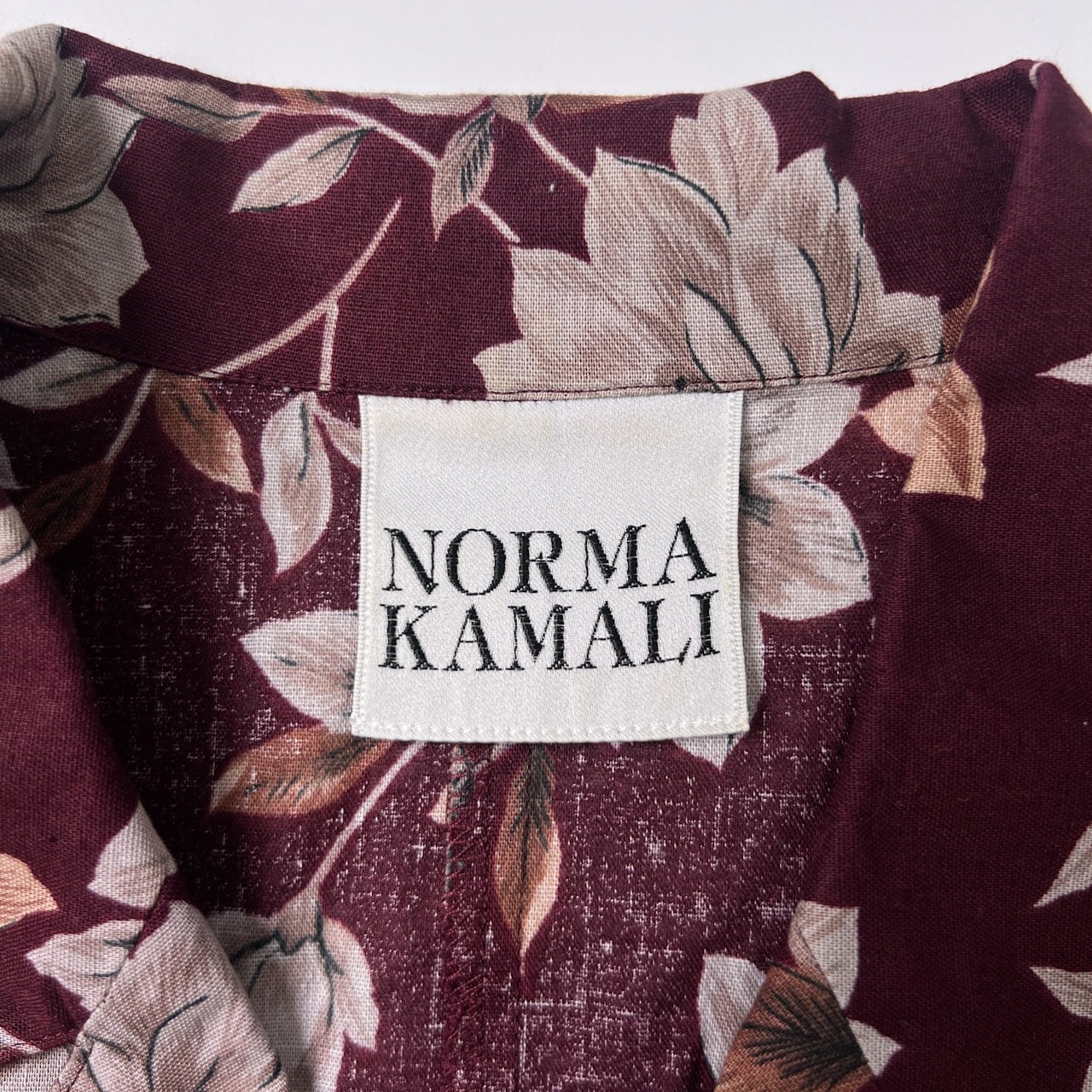 NORMA KAMALI ノーマカマリ コットン&リネン オープンカラー 半袖シャツ 9/ボルドー/アロハ