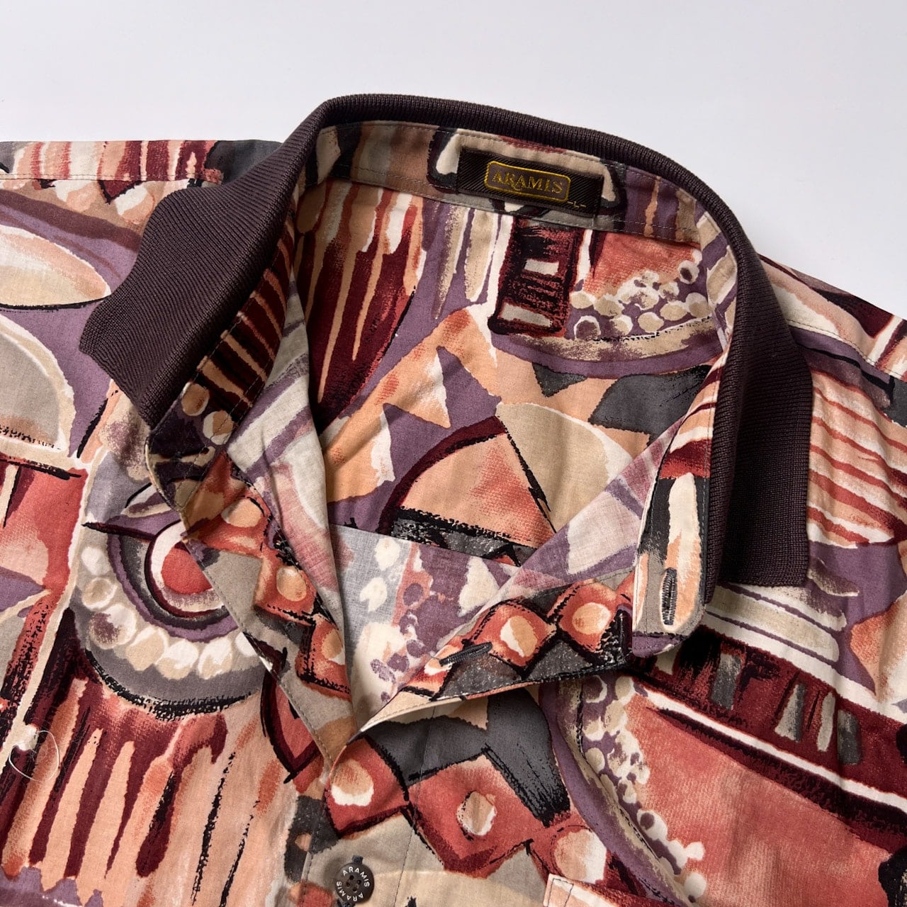 ARAMIS アラミス ペイントデザイン 総柄 半袖シャツ L/くすみピンク パープル 系