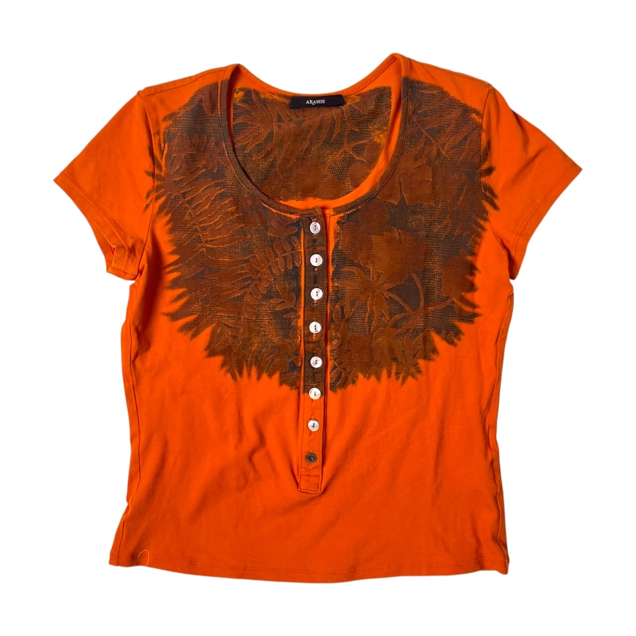 ARAMIS アラミス プリントデザイン ヘンリーネック ストレッチ 半袖Tシャツ 38/オレンジ