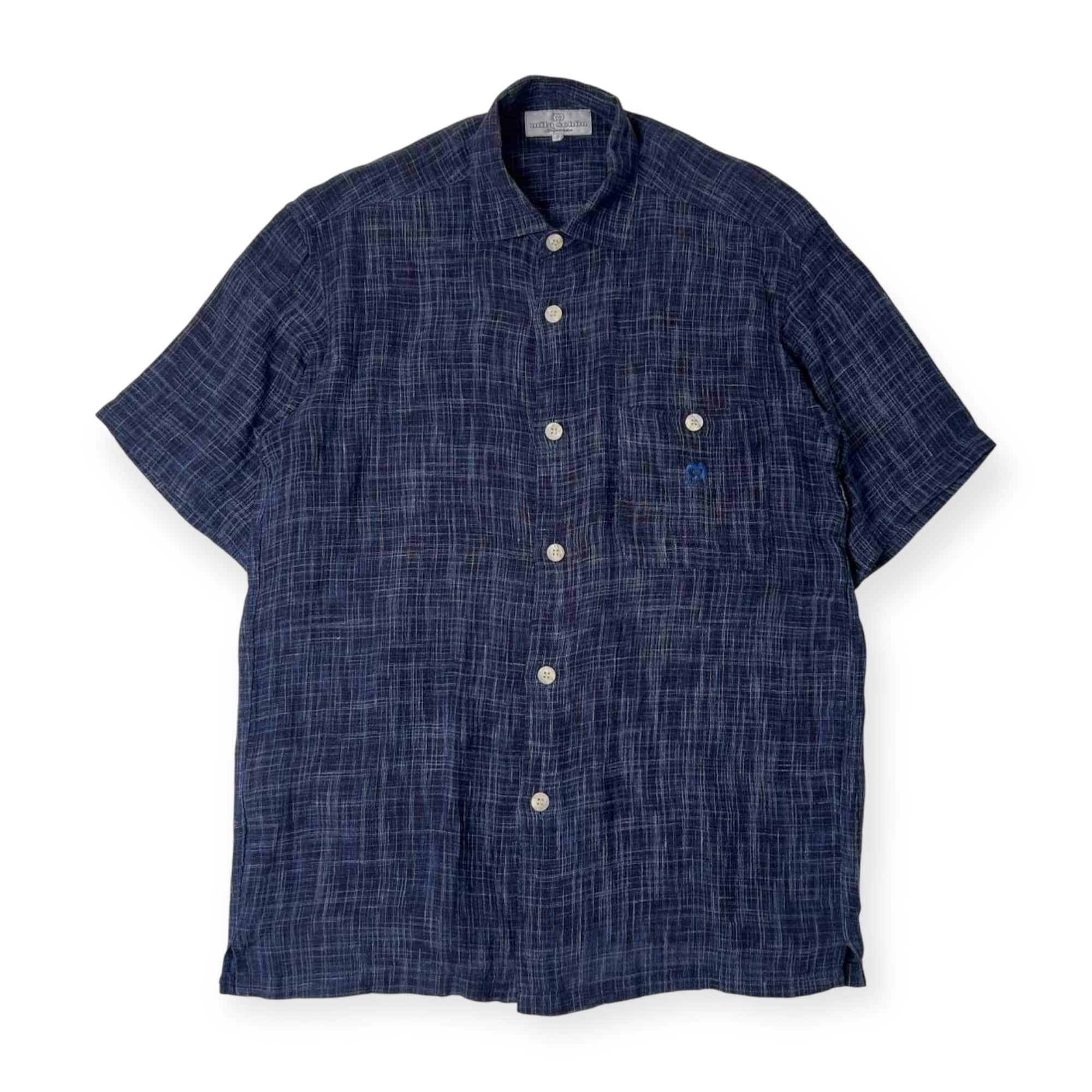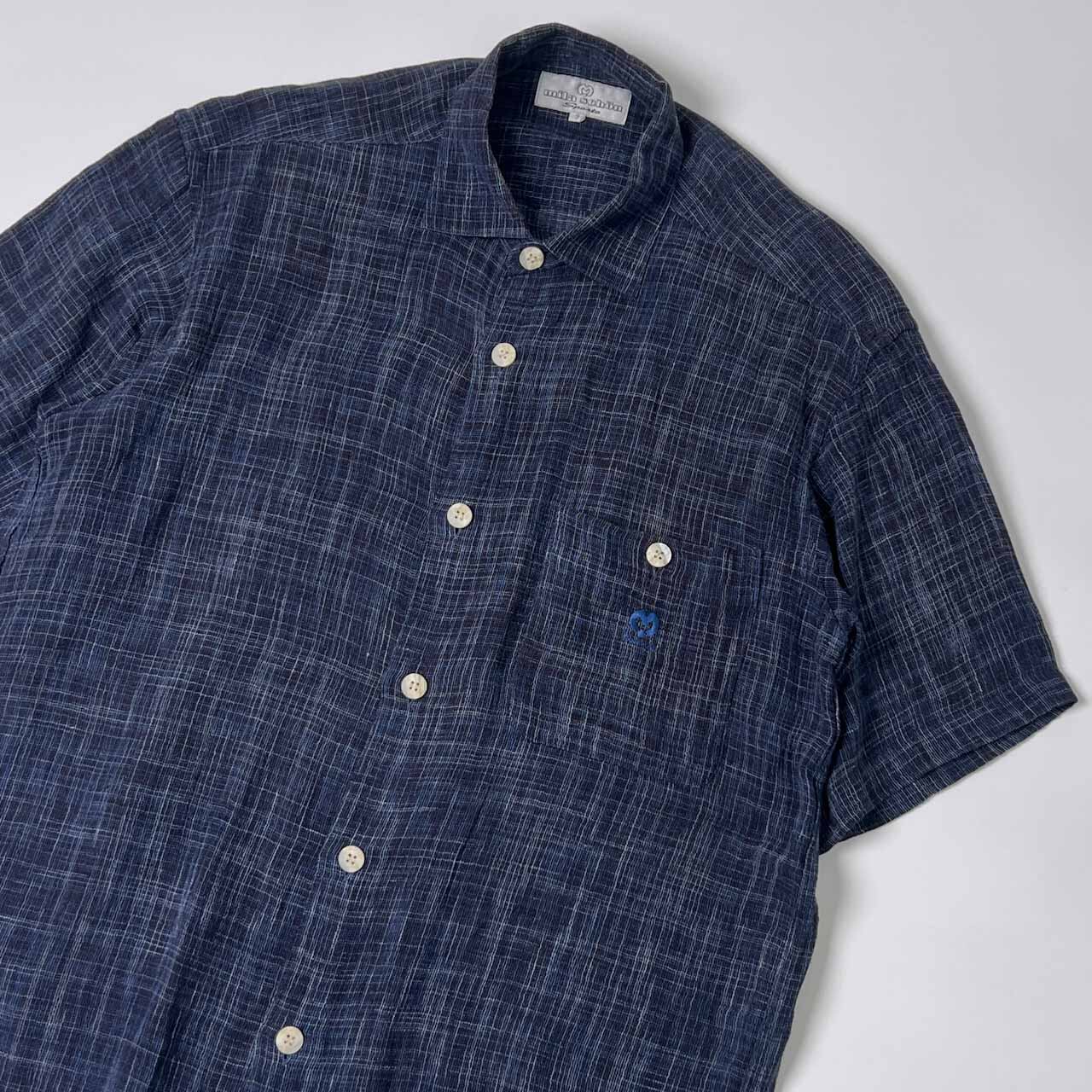 リネン混 mila schön Sports ミラショーン チェック 半袖シャツ 3/ネイビー メンズ ゴルフ