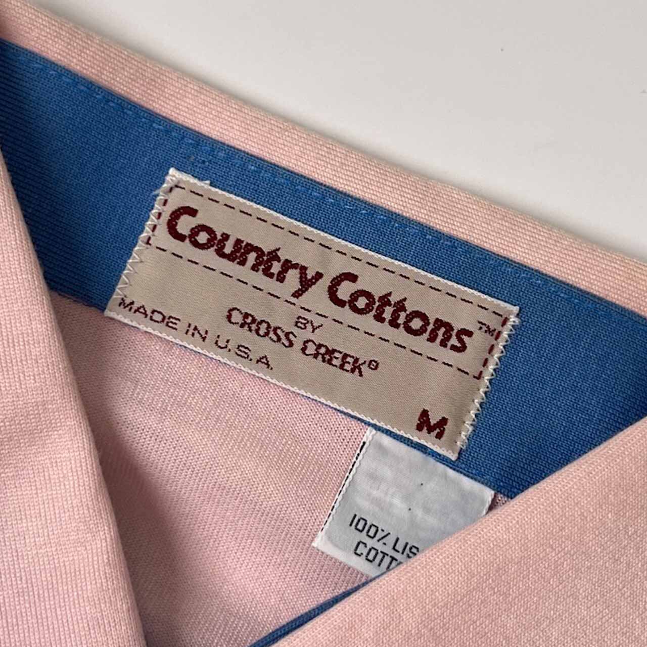 90s USA製 Country Cottons BY CROSS CREEK カントリーコットン クロスクリーク 天竺 半袖 ポロシャツ M/ピンク×ブルー メンズ ビンテージ