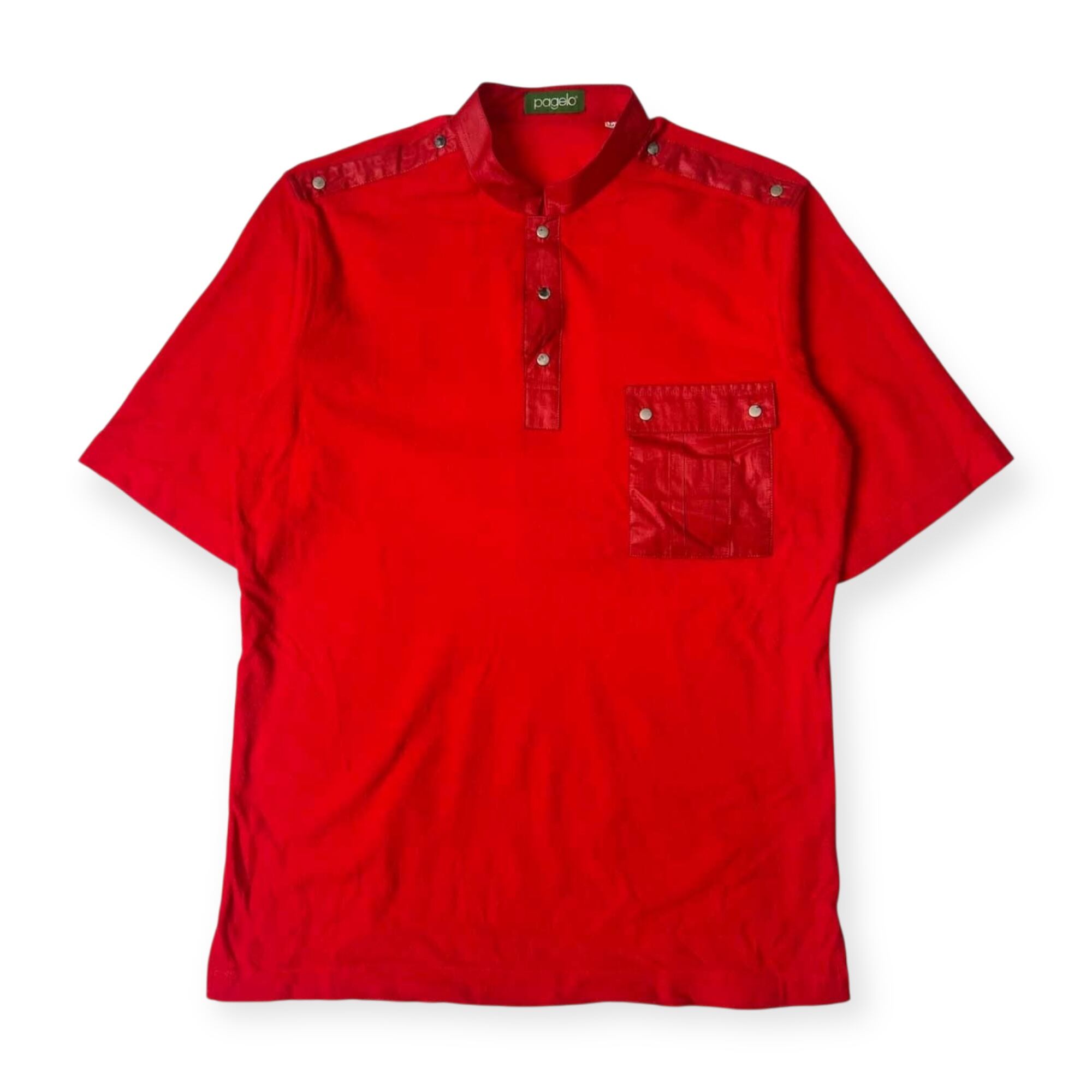 PAGELO パジェロ パイル生地 バンドカラー 半袖 ポロシャツ L/レッド メンズ ビンテージ