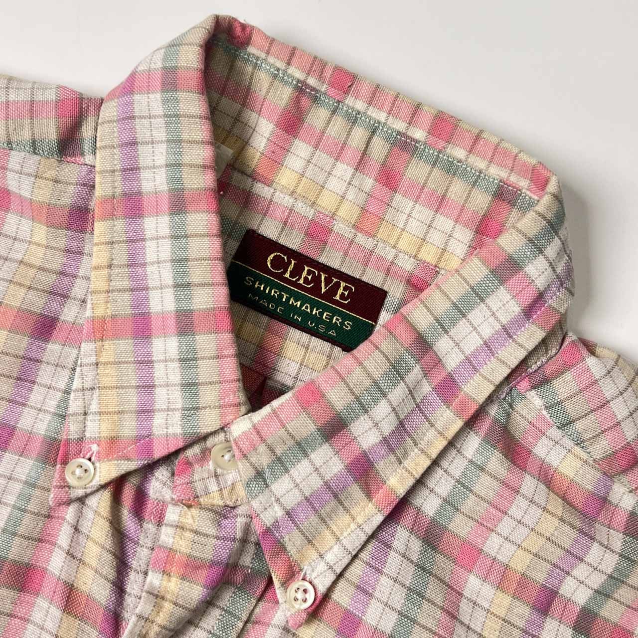 90s USA製 CLEVE SHIRTMAKERS クリーブ チェック BD ボタンダウン 半袖シャツ M/マルチ メンズ ビンテージ
