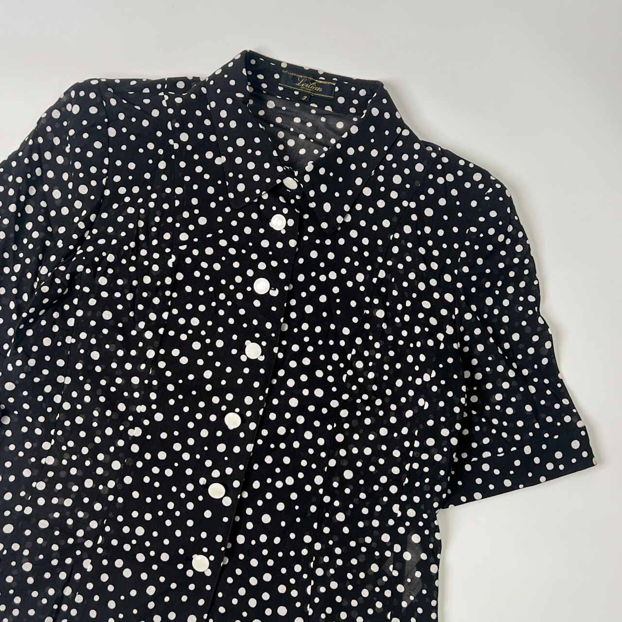 Leilian レリアン シアー ドット 半袖シャツ ブラウス 9/ブラック×ホワイト レディース