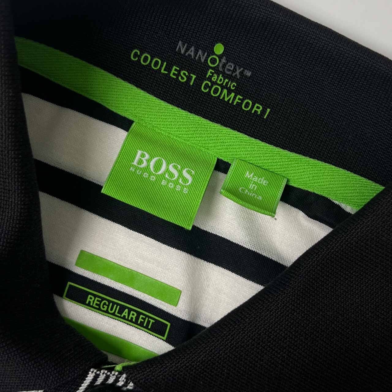 BOSS HUGO BOSS ヒューゴ ボス COOLEST COMFOR1 REGULAR FIT ボーダー 天竺 半袖 ポロシャツ S /ブラック×ホワイト