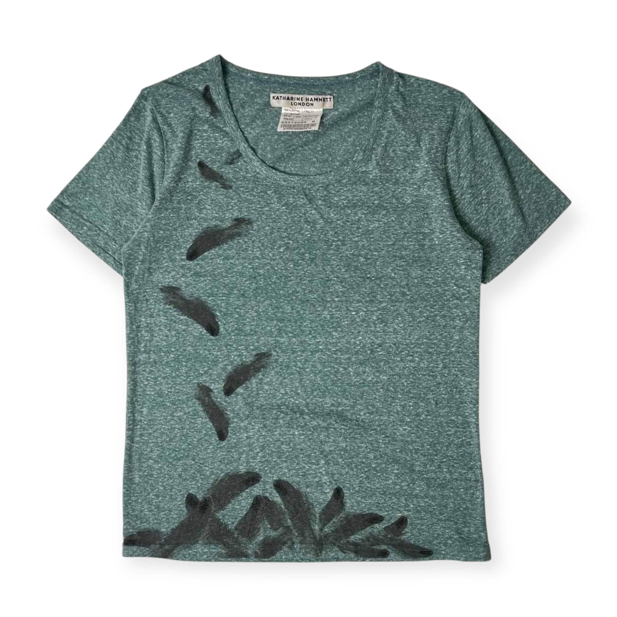 KATHARINE HAMNETT LONDON キャサリンハムネット 羽 フェザー デザイン 半袖 Tシャツ M/グリーン メンズ