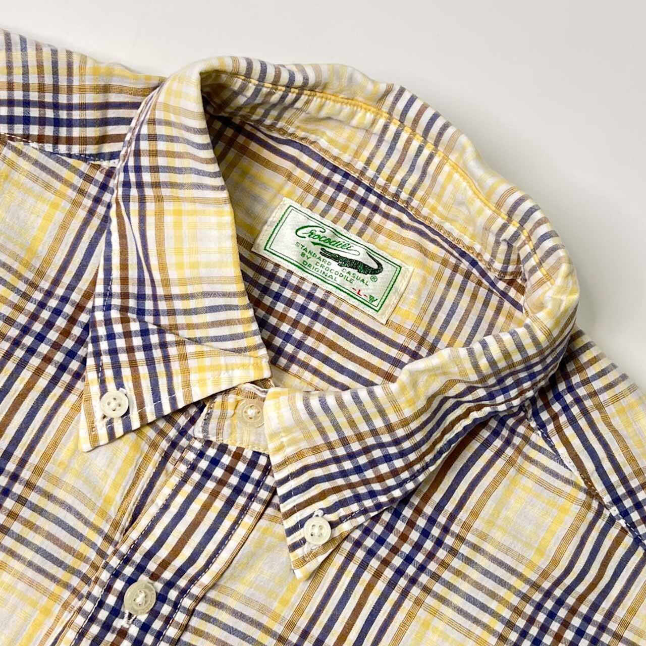 Crocodile クロコダイル チェック BD ボタンダウン 半袖シャツ L/イエロー×ブルー メンズ