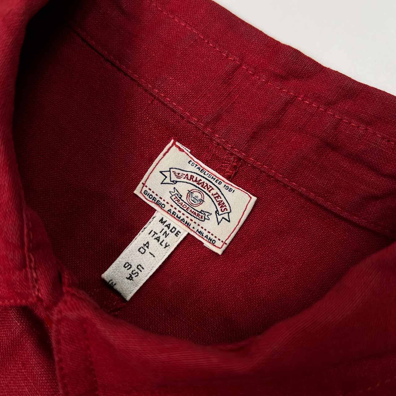 90s ARMANI JEANS アルマーニ ジーンズ 半袖 リネン ワンピース 40 /レッド/イタリア製/麻100%/ビンテージ