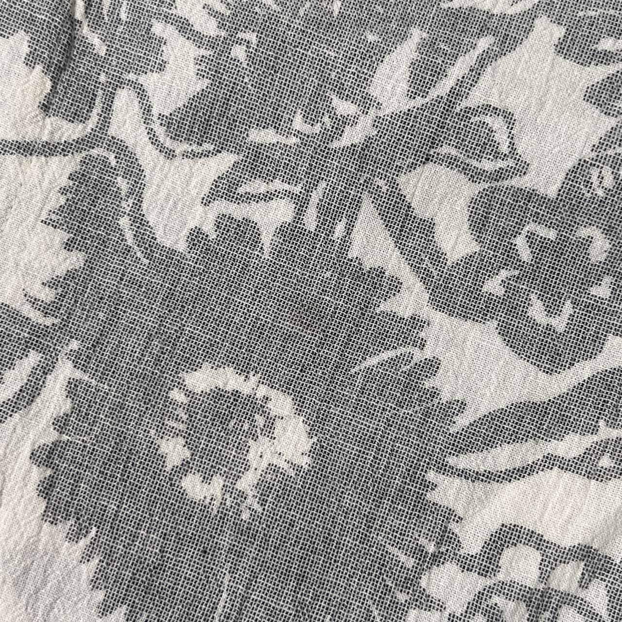 リネン混 Plantation プランテーション 花柄 バンドカラー 比翼 五分袖 七分袖 シャツ M/ホワイト×グレー/メンズ/エイネット