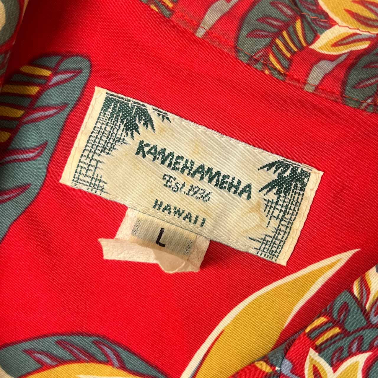 90s KAMEHAMEHA カメハメハ ボタニカル 半袖 アロハシャツ ハワイアンシャツ L/レッド系 メンズ ビンテージ
