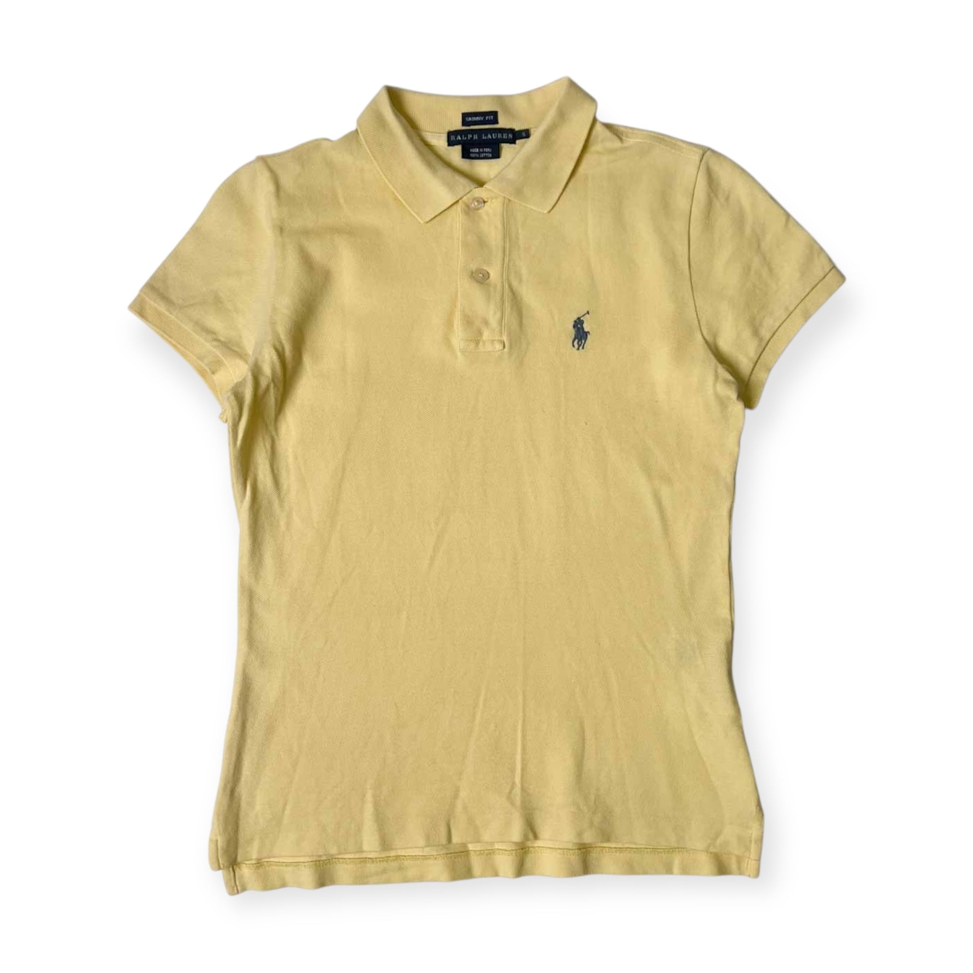 90s 00s RALPH LAUREN ラルフローレン SKINNY FIT 鹿の子 半袖 ポロシャツ S/イエロー レディース インパクト21 オールド