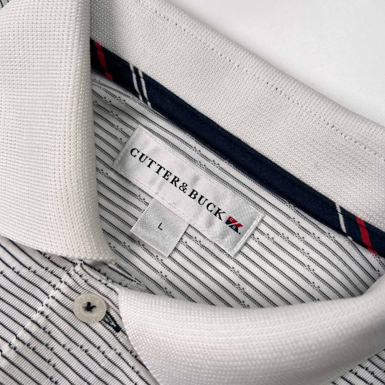 CUTTER&BUCK カッターアンドバック ゴルフ ロゴ刺繍 アーガイル柄 半袖 ドライ ポロシャツ サイズ L /メンズ/ホワイト系