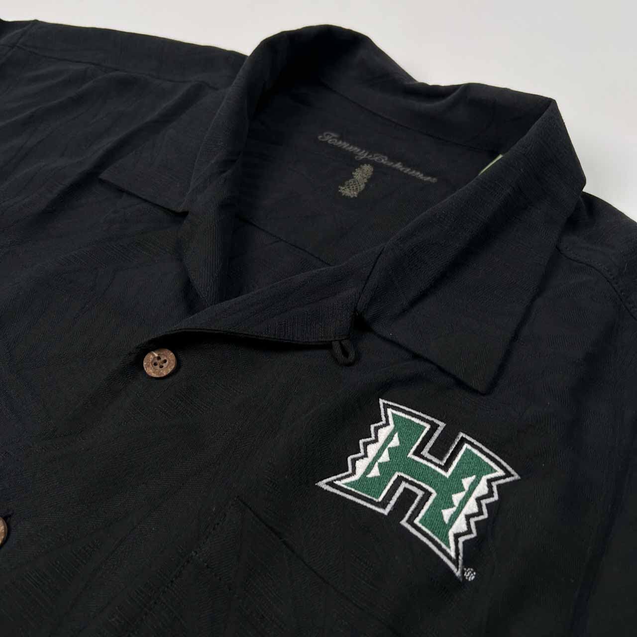シルク100% Tommy Bahama トミーバハマ ワッペン付き 半袖 シルクシャツ アロハシャツ サイズ L /絹100%/メンズ/ブラック