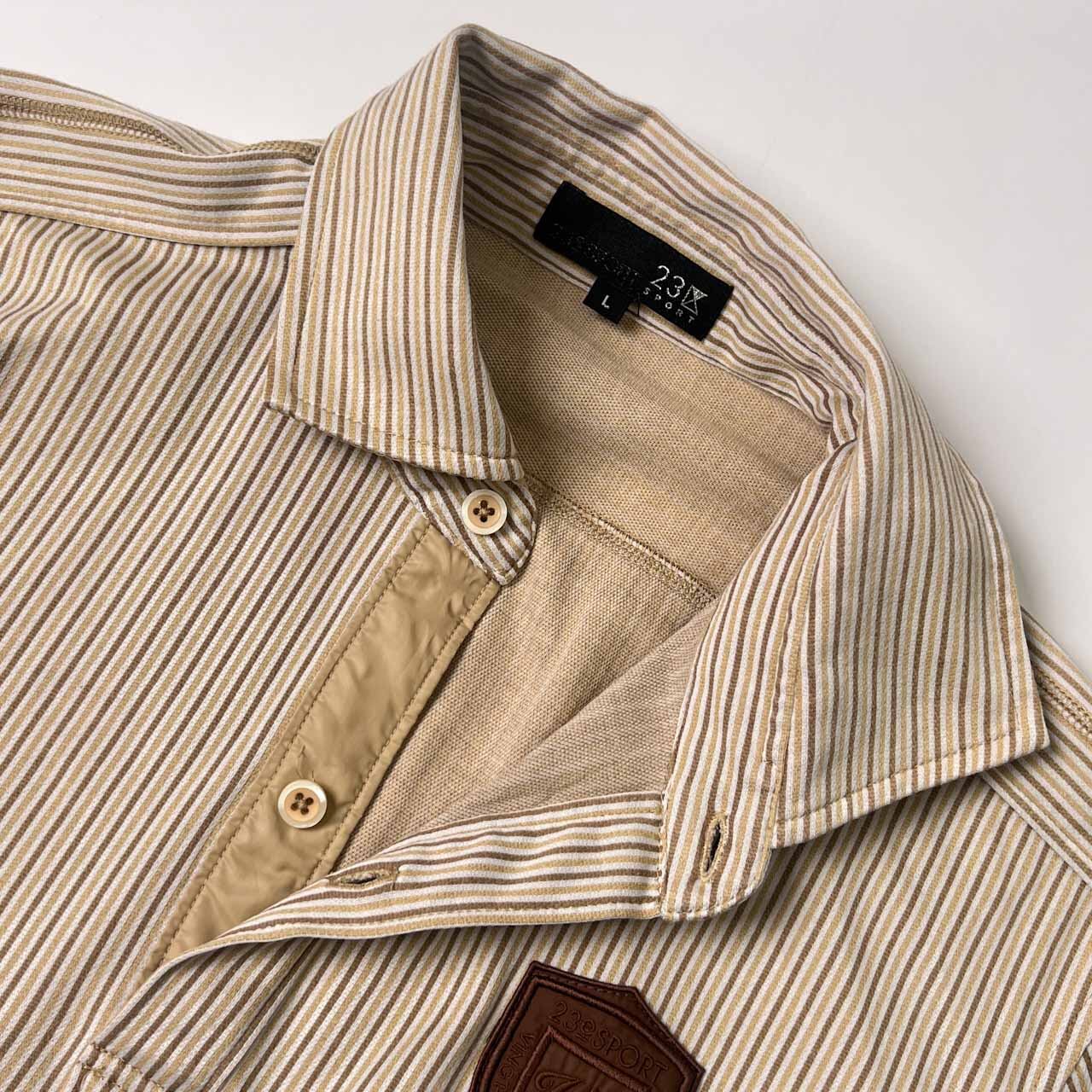 23区 SPORT ニジュウサンク スポーツ ストライプ ナンバリング 半袖 ポロシャツ L/ベージュ系 メンズ ゴルフ