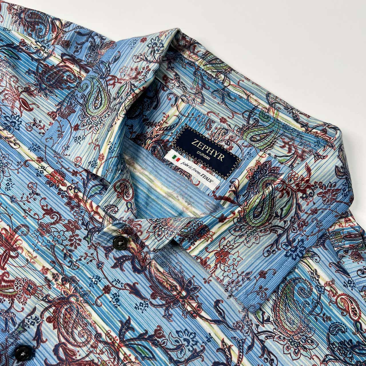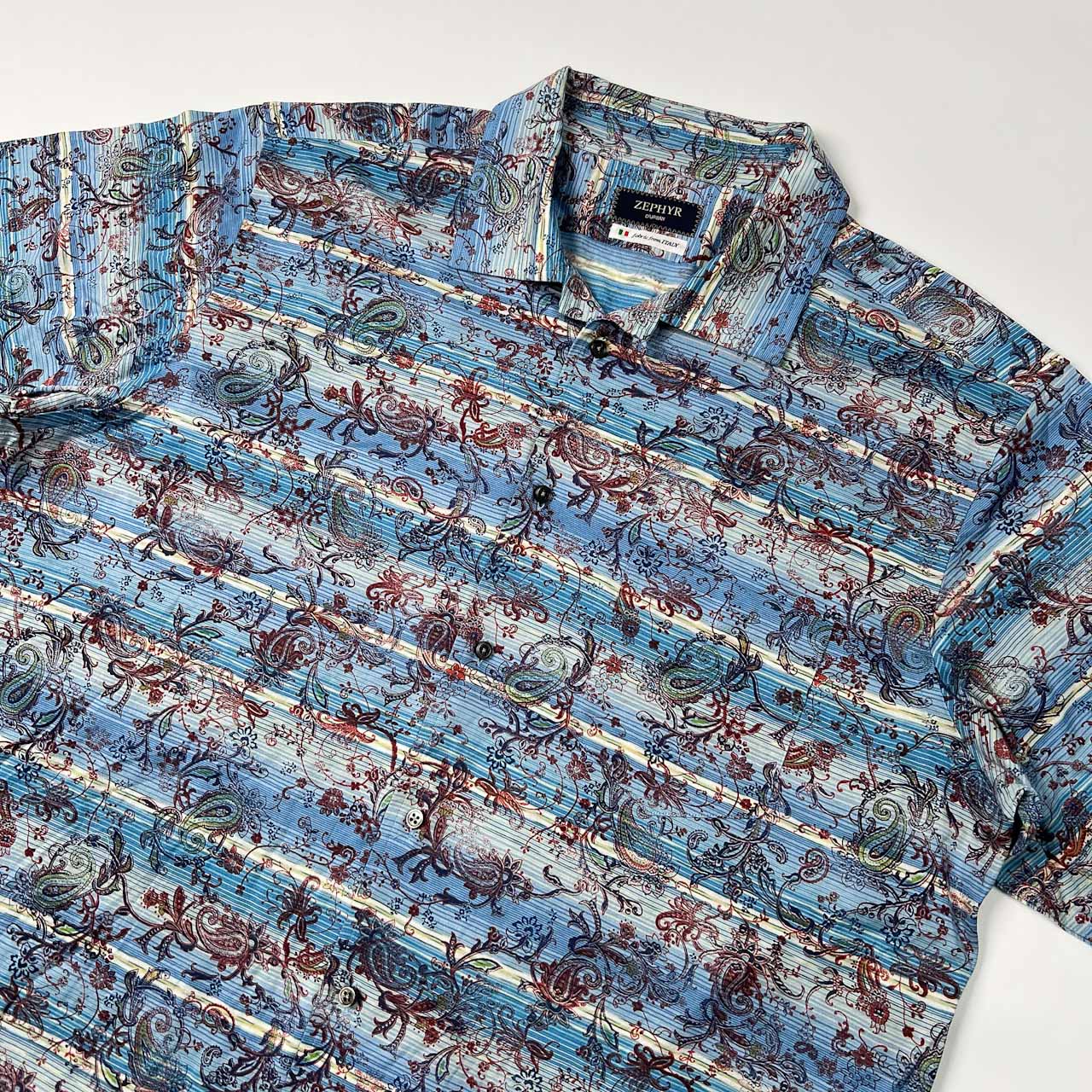 ダーバン DURBAN ゼファー ZEPHYR イタリア製生地 ペイズリー柄 総柄 半袖シャツ サイズ 3L /メンズ/レナウン