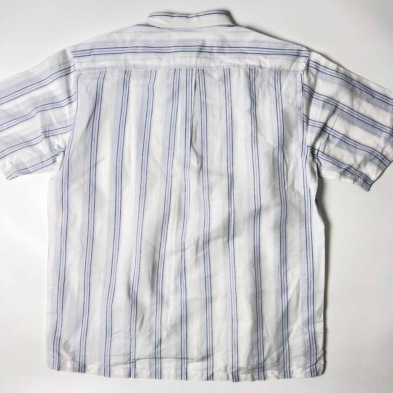 リネン混 G-STAGE comming man ジーステージ ストライプ BD ボタンダウン 半袖シャツ LL/マルチ メンズ