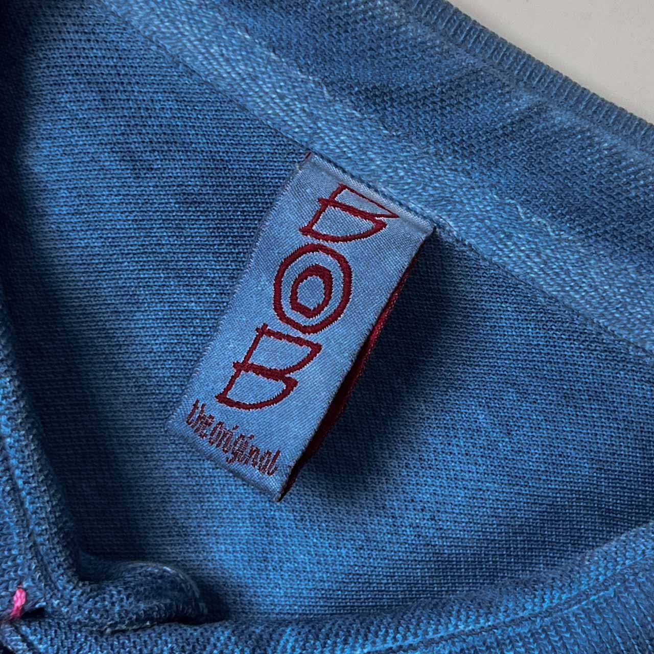 イタリア製 BOB ボブ 花柄 刺繍 鹿の子 半袖 ポロシャツ L/くすみブルー レディース