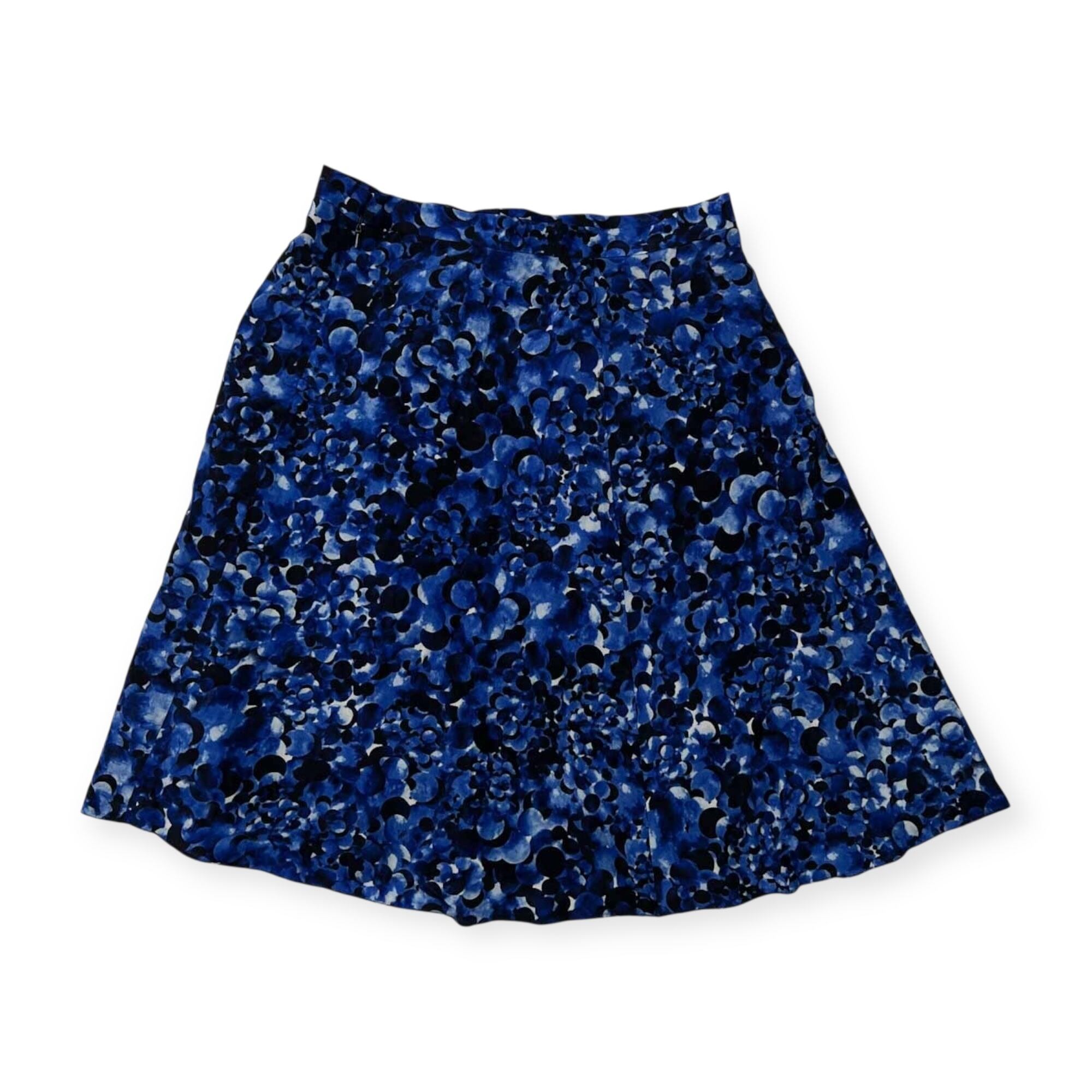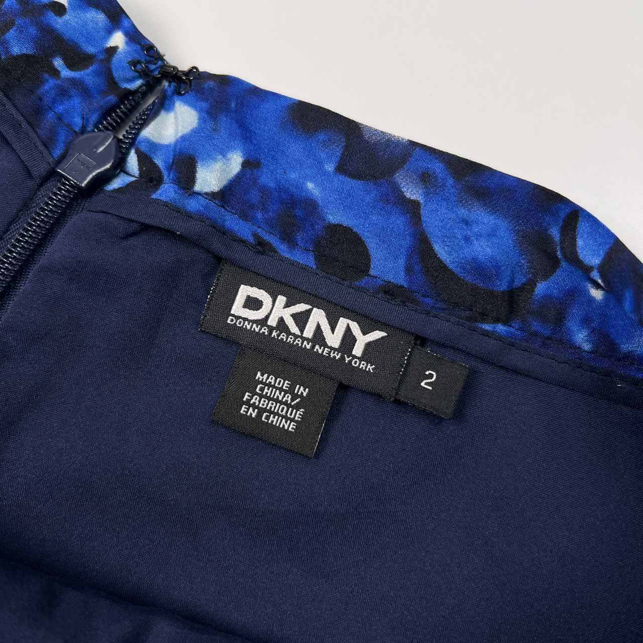 DKNY ダナキャランニューヨーク 総柄 フレア シルク スカート サイズ 2 /ブラック×ブルー/オンワード樫山