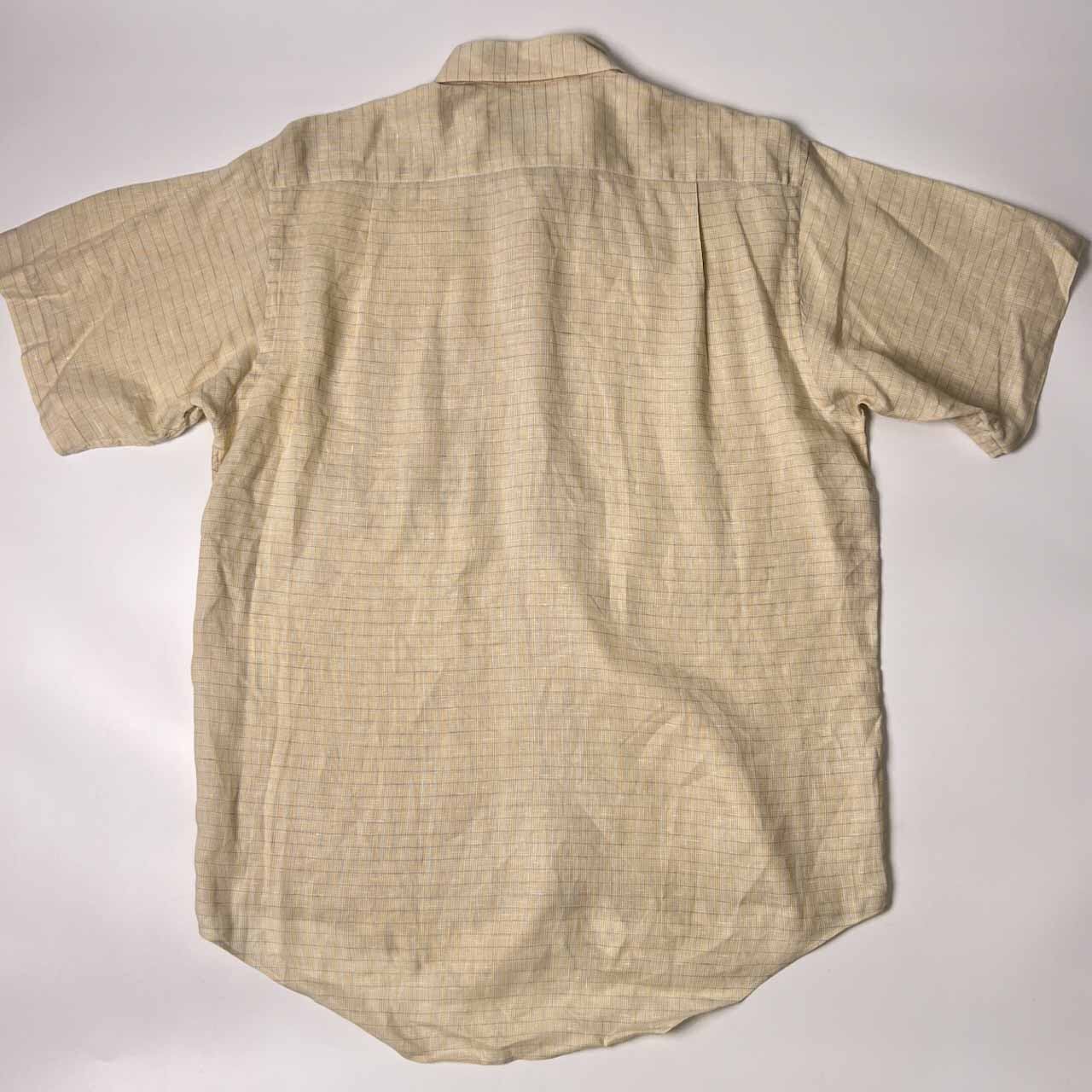 90s リネン100% Aquascutum アクアスキュータム チェック 半袖シャツ M/イエロー系 メンズ ビンテージ