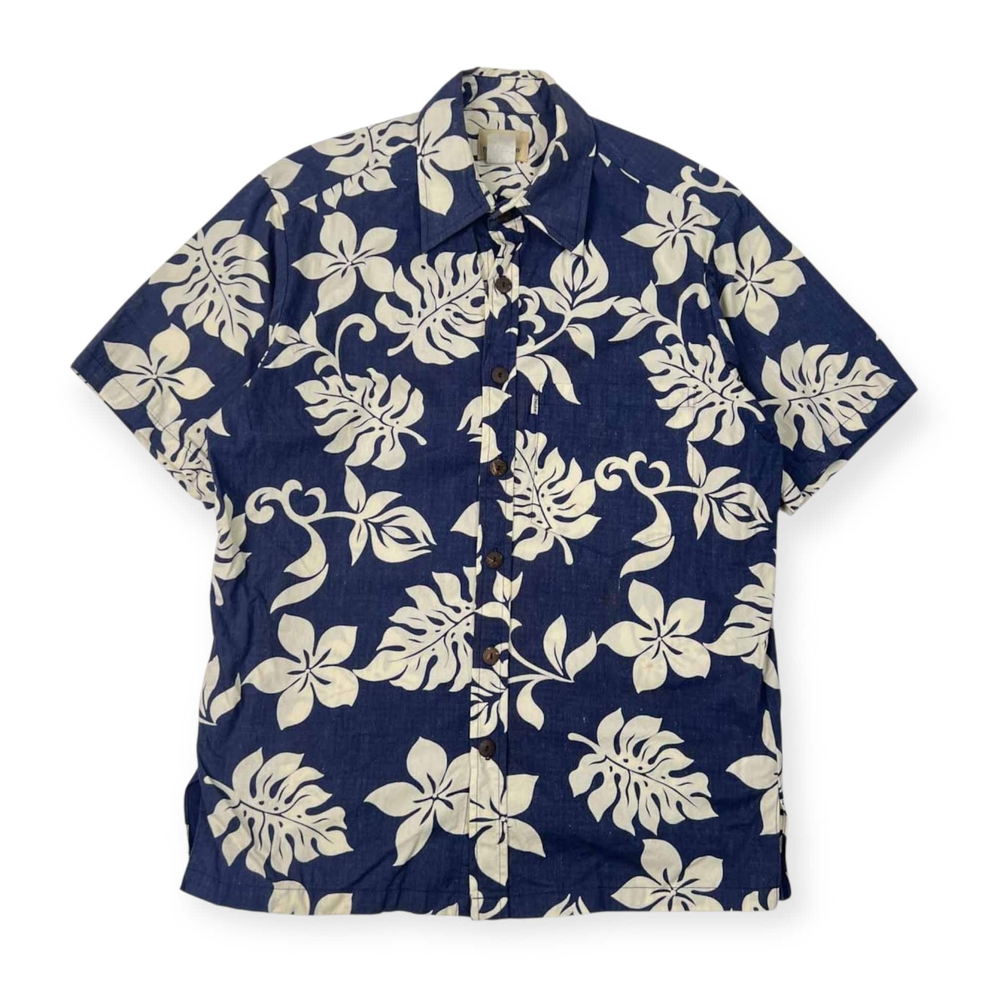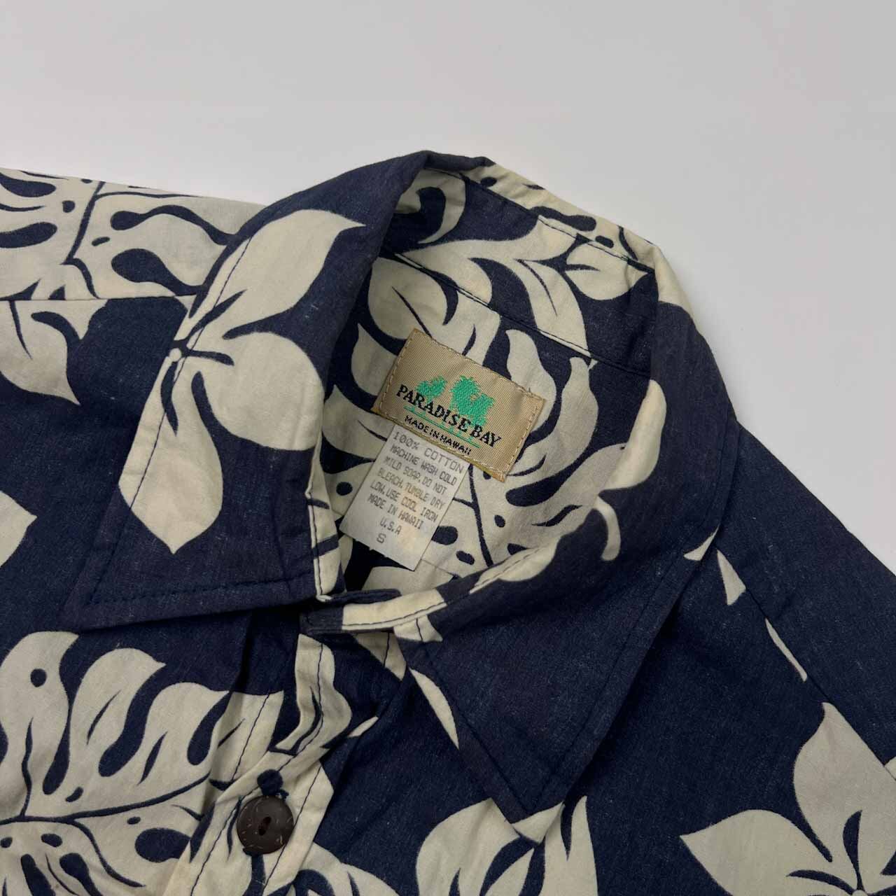 HAWAII製 PARADISE BAY パラダイスベイ 花柄 半袖 アロハシャツ ハワイアンシャツ S/ネイビー系 メンズ ビンテージ