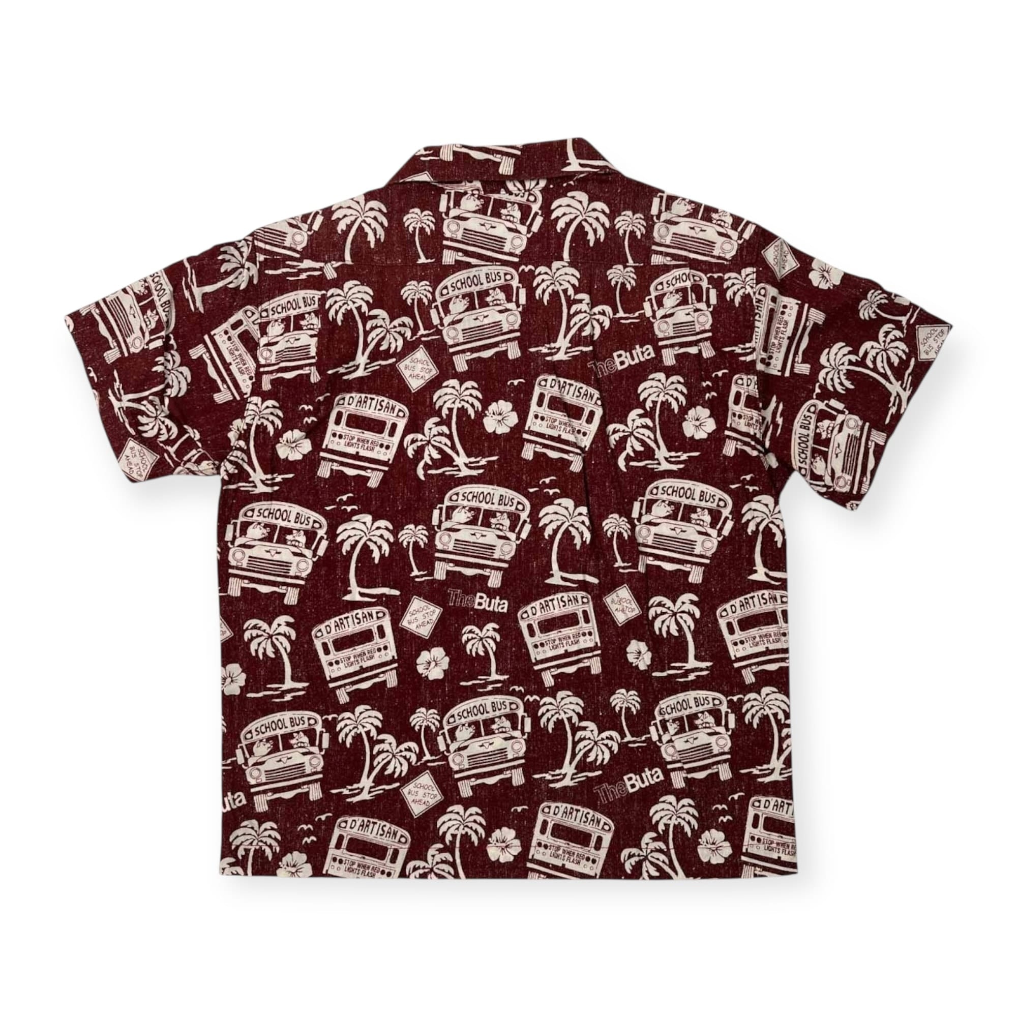 STUDIO D'ARTISAN ステュディオ ダルチザン バス柄 総柄 半袖 アロハシャツ サイズ S /男女でも/赤茶系/日本製