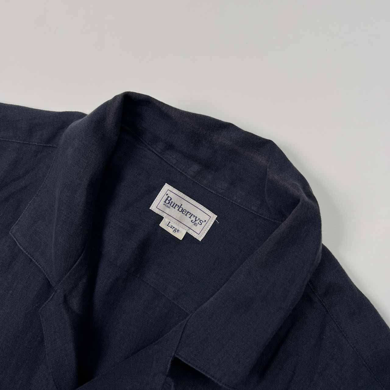 麻100% Burberrys' バーバリー オープンカラー 開襟 半袖 リネン シャツ サイズ L /ネイビー/C-TK83/ビンテージ